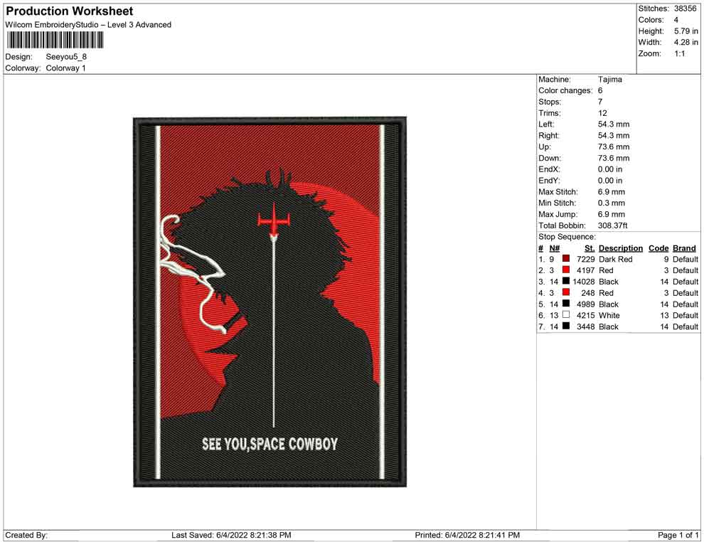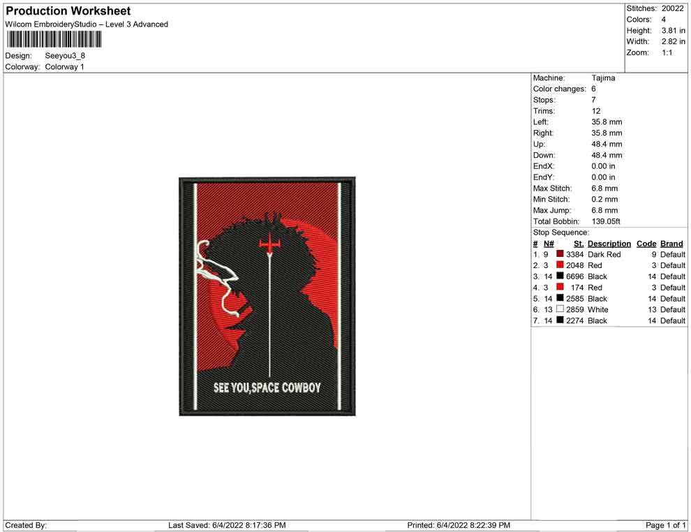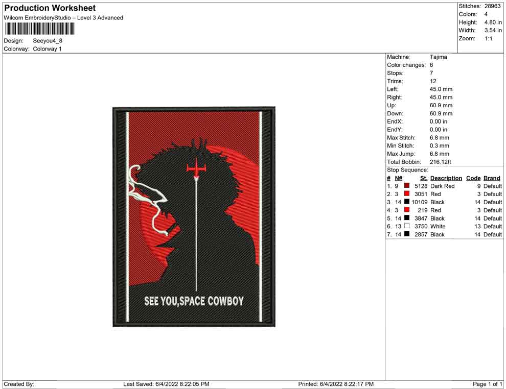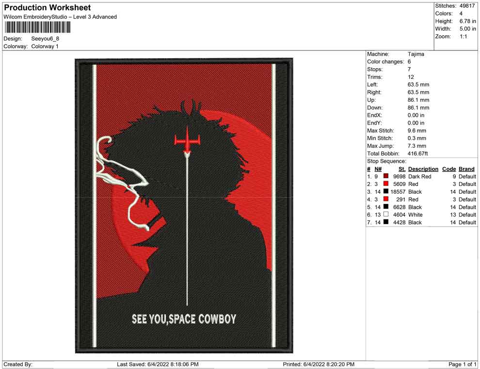 See you, Space Cowboy embroidery design