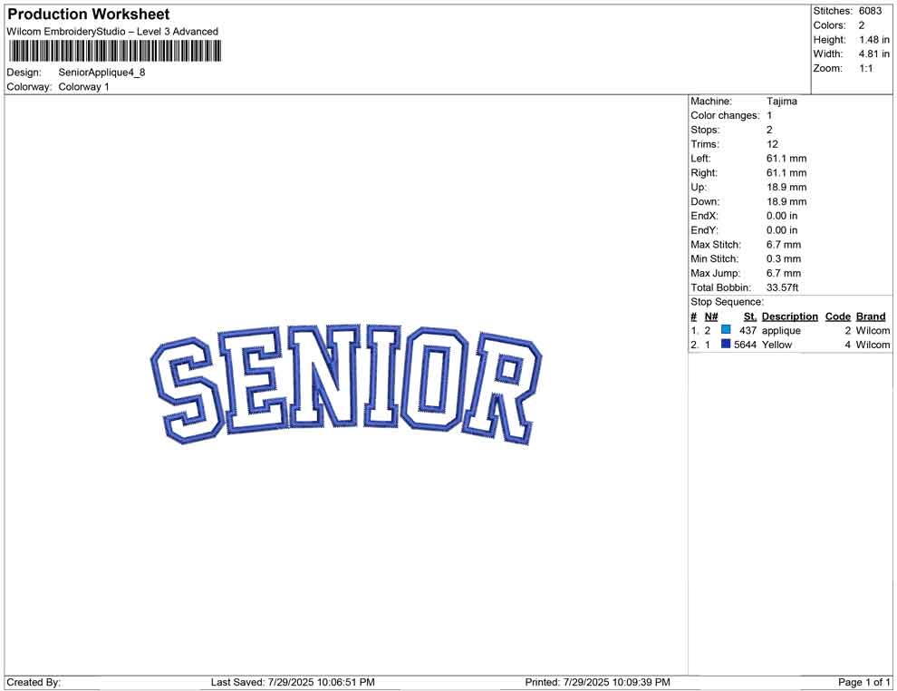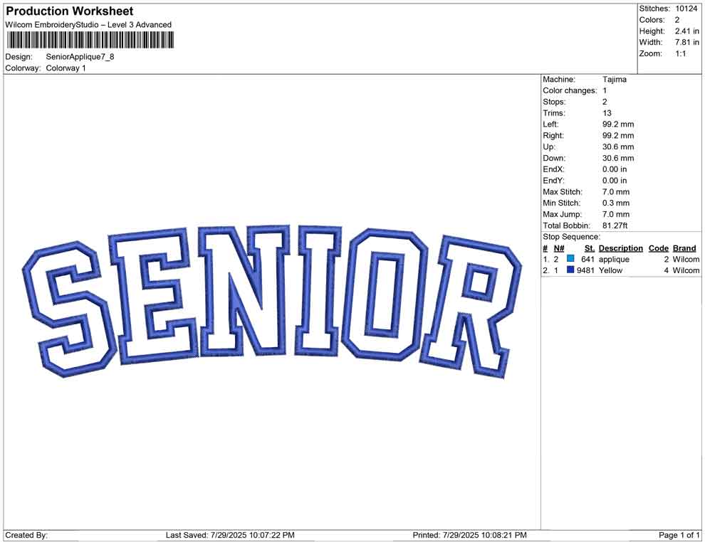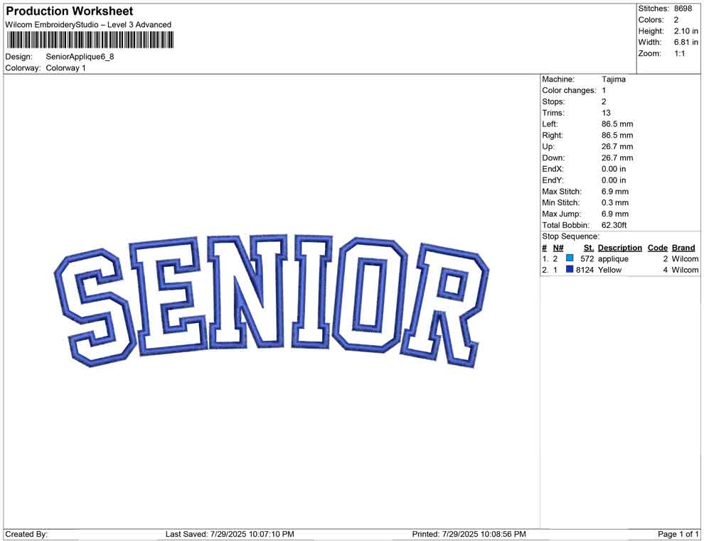 Senior Applique Embroidery Design