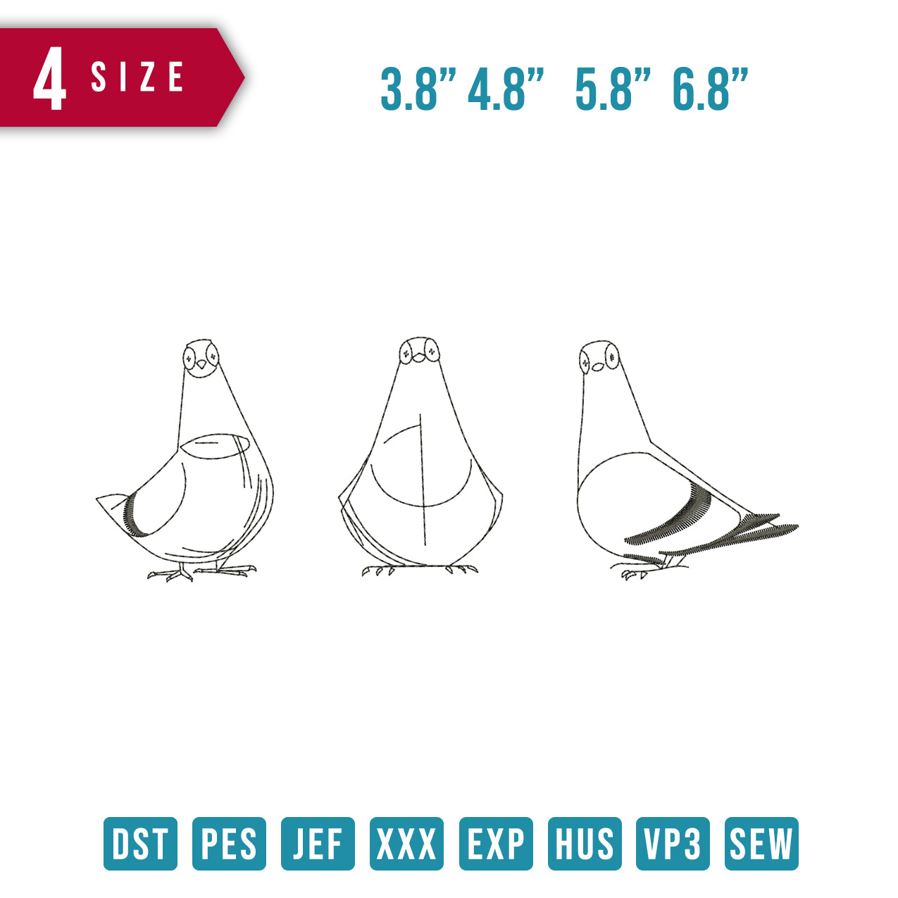 3 Pigeon Line Art embroidery design