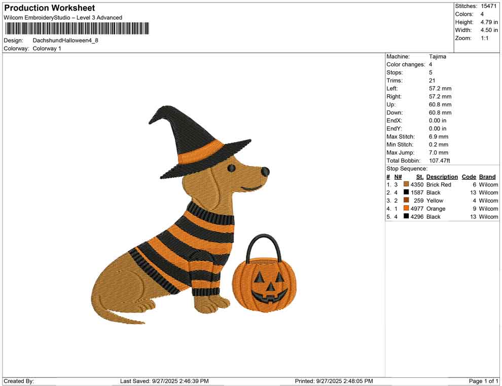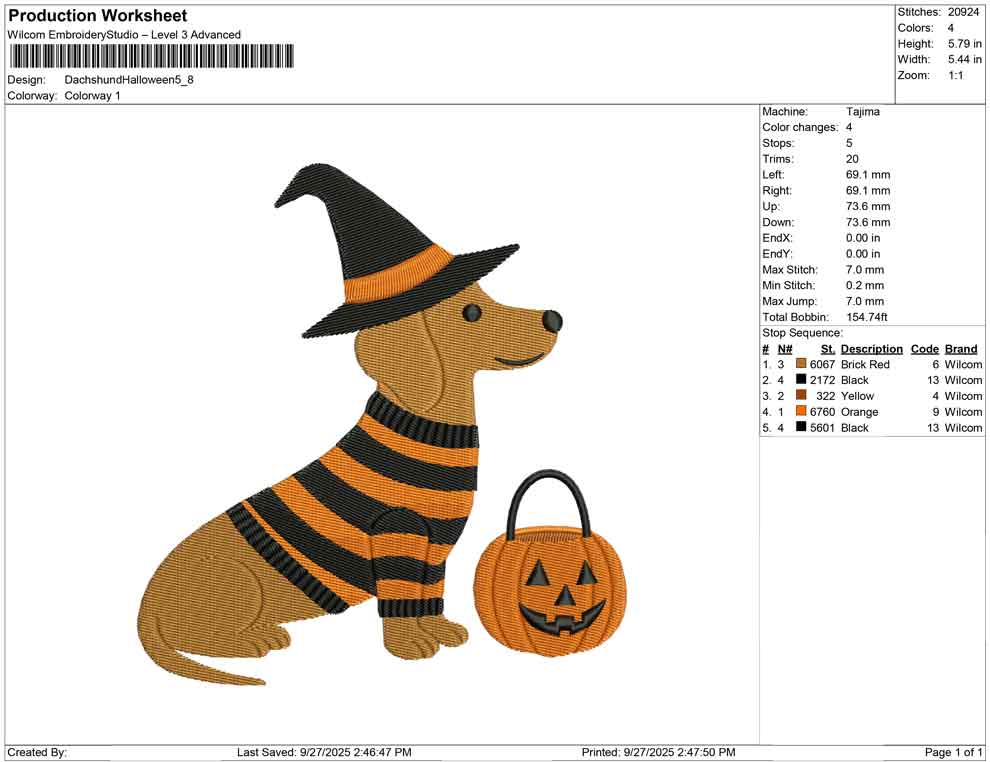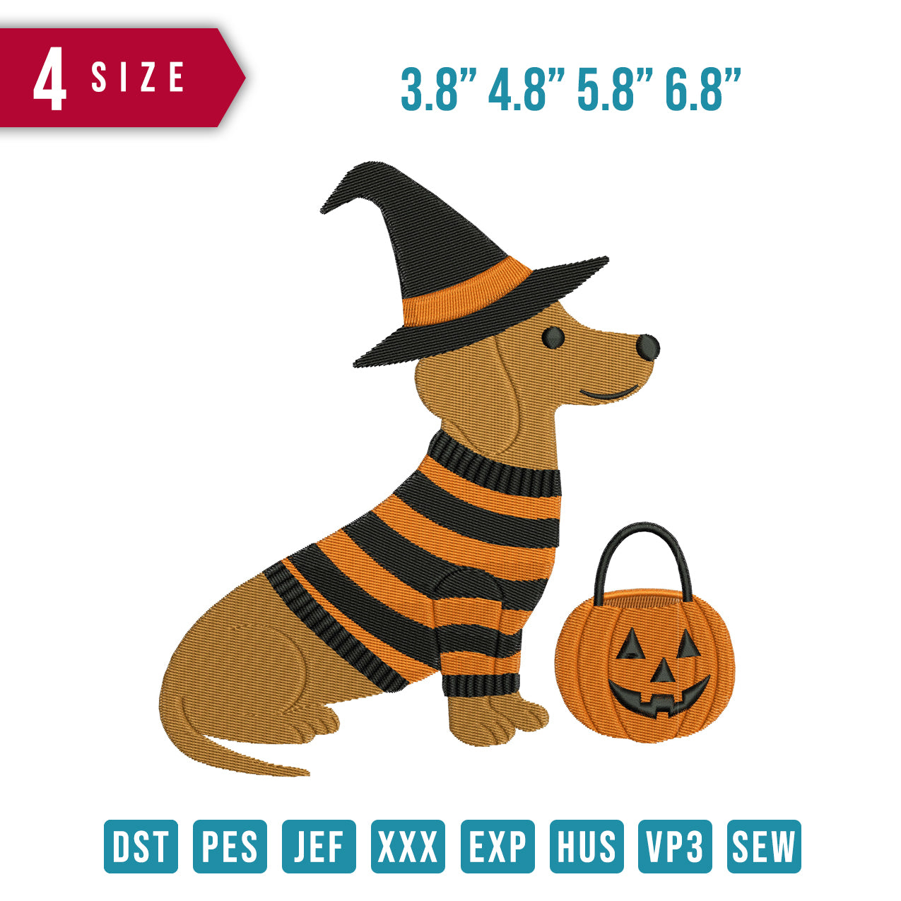 Dachshund Halloween Embroidery Design