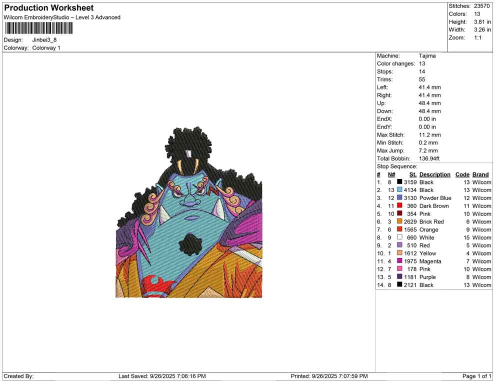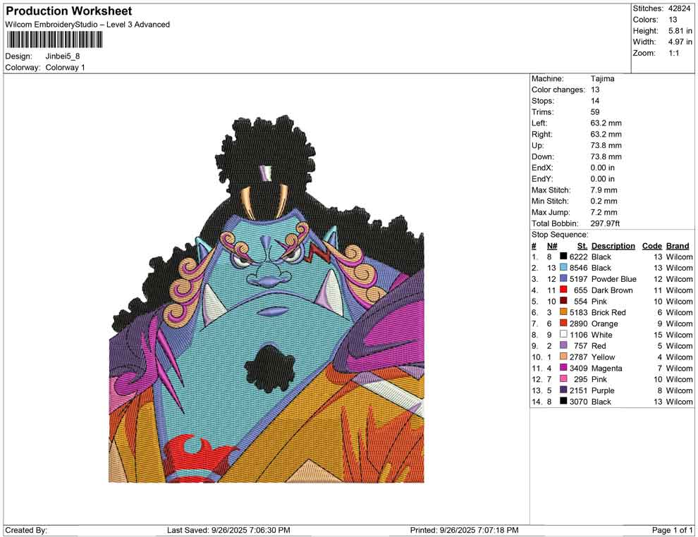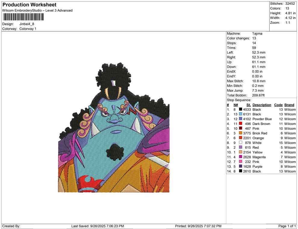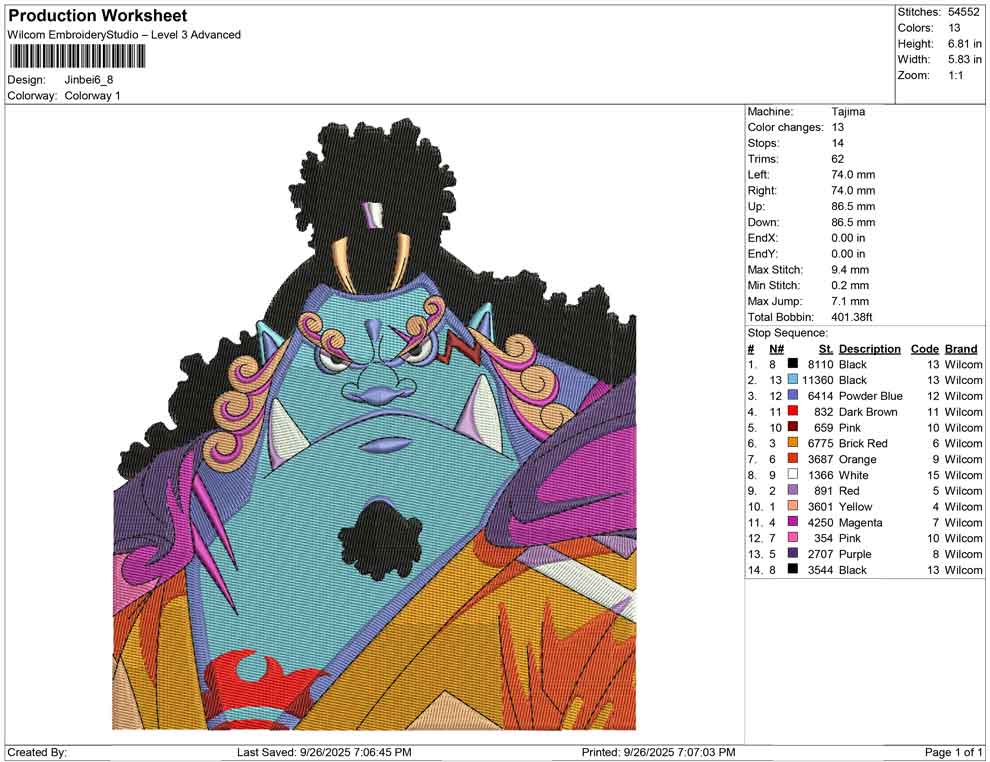 Jinbei embroidery design