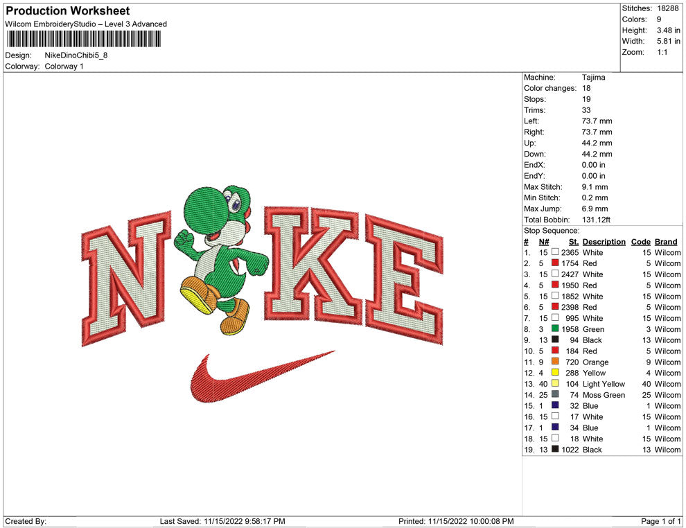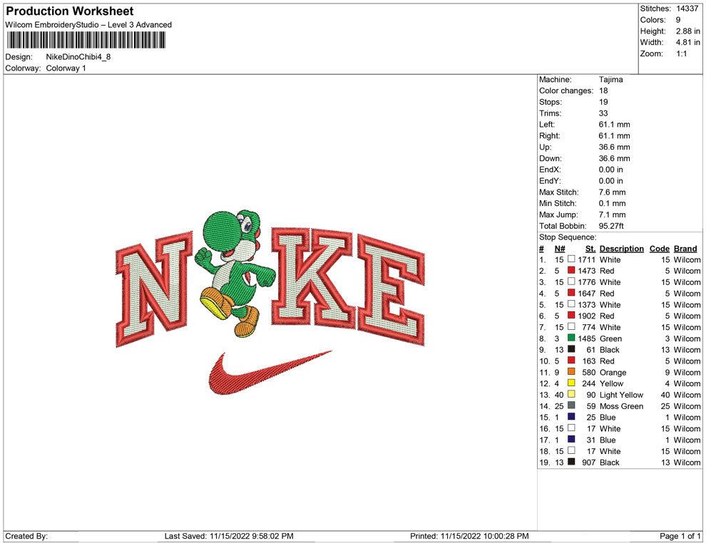 Nike Dino Chibi embroidery design