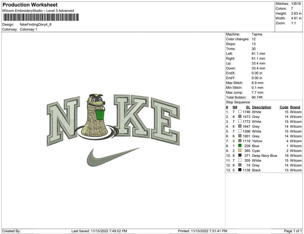 Nike Finding Dory embroidery design