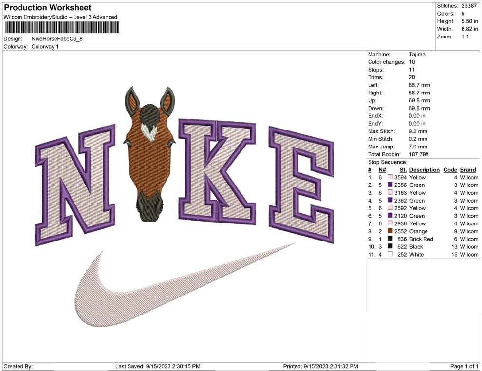 Nike Horse face C embroidery design