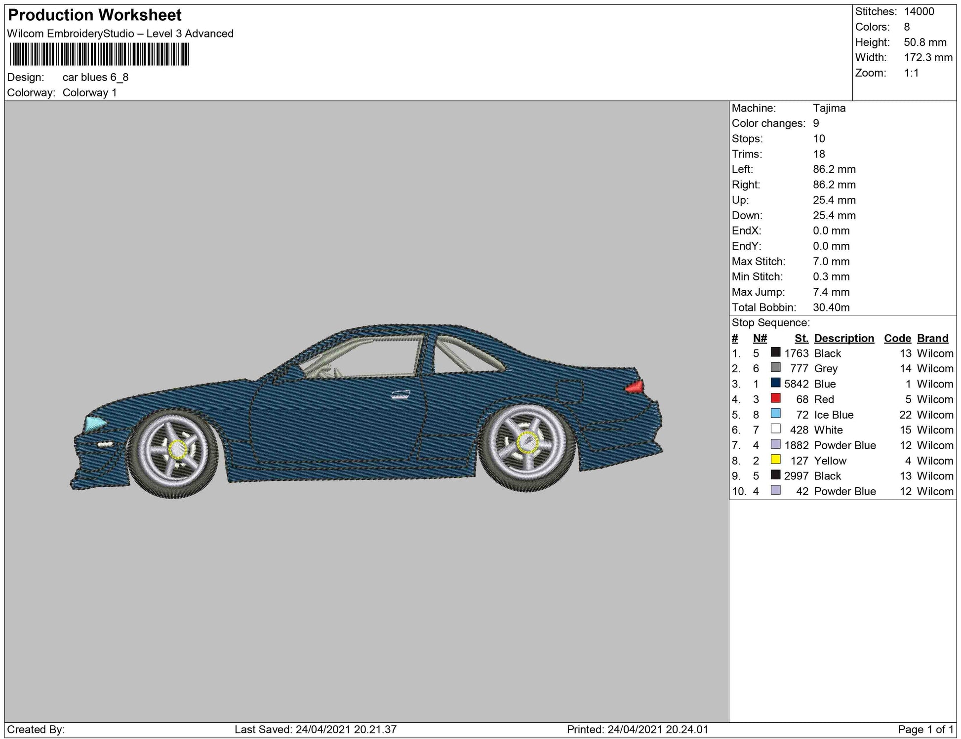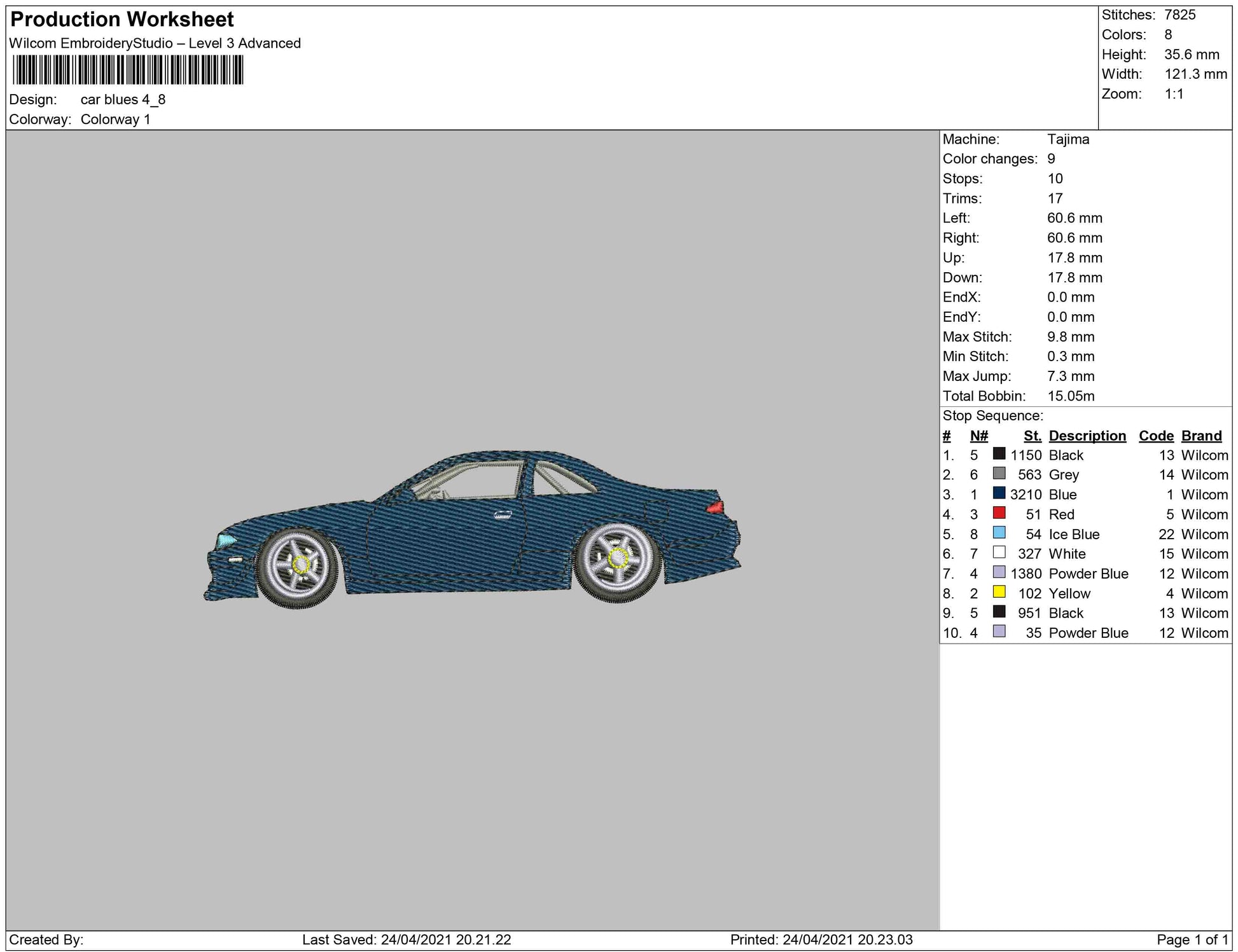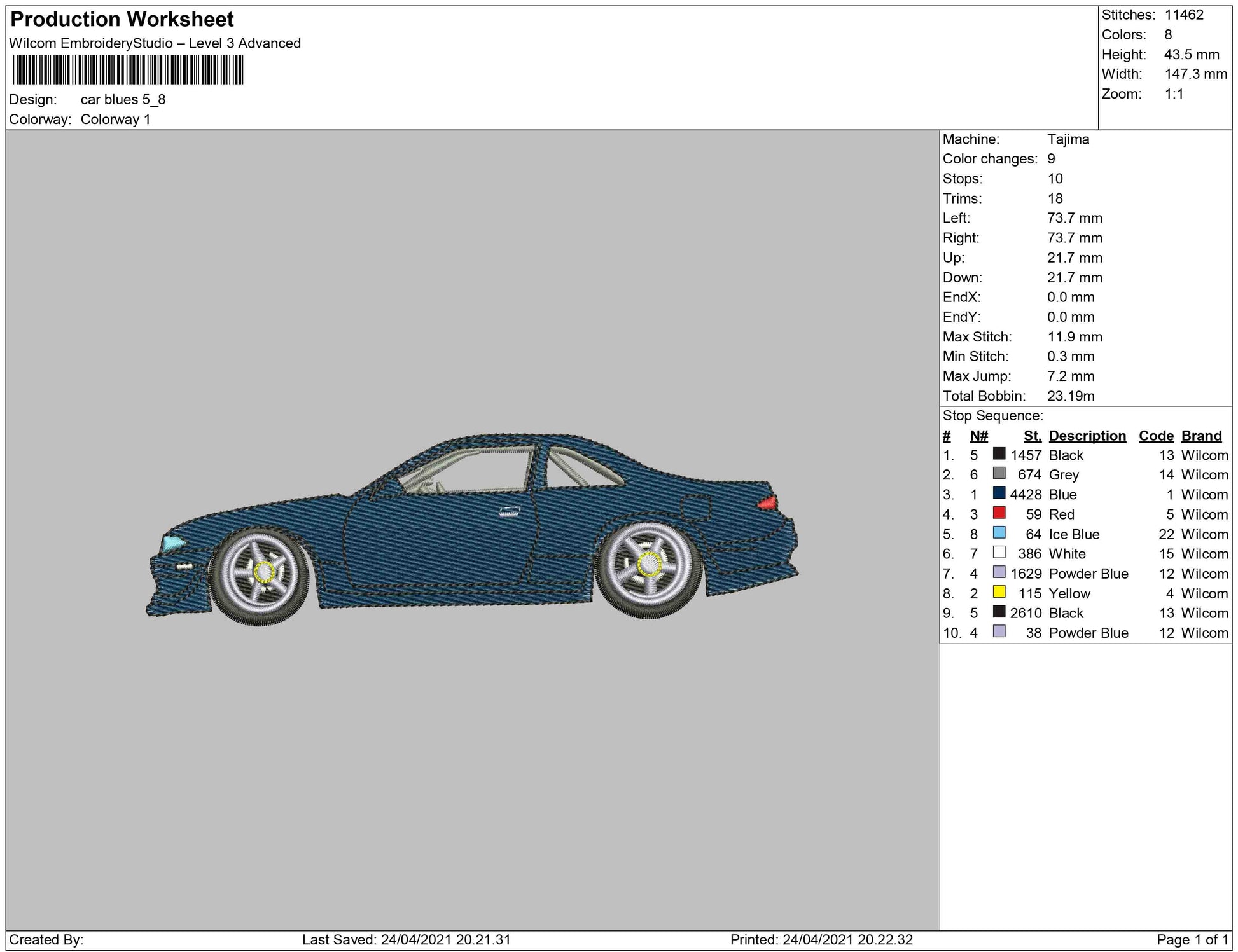 Car Blue embroidery Design
