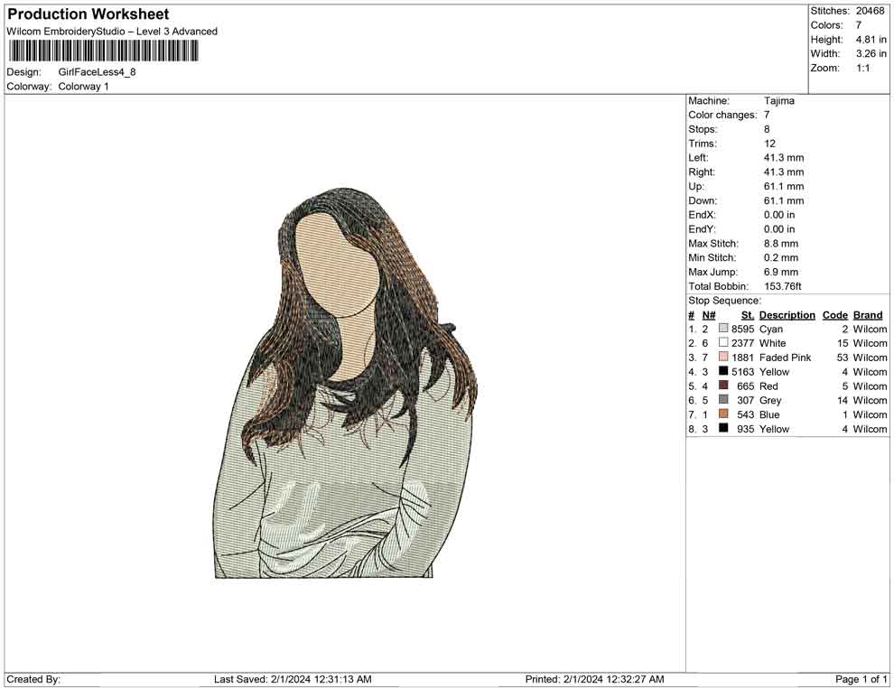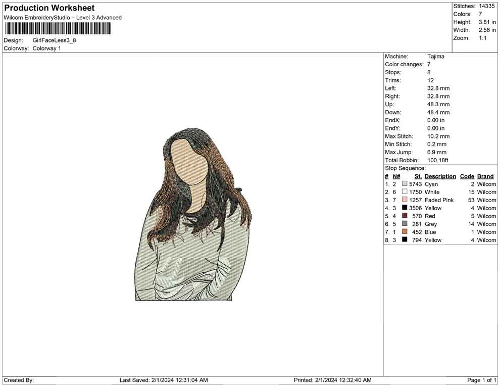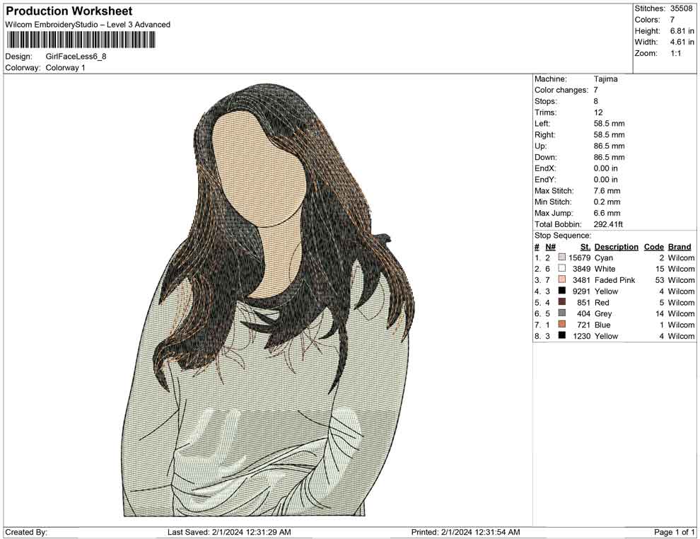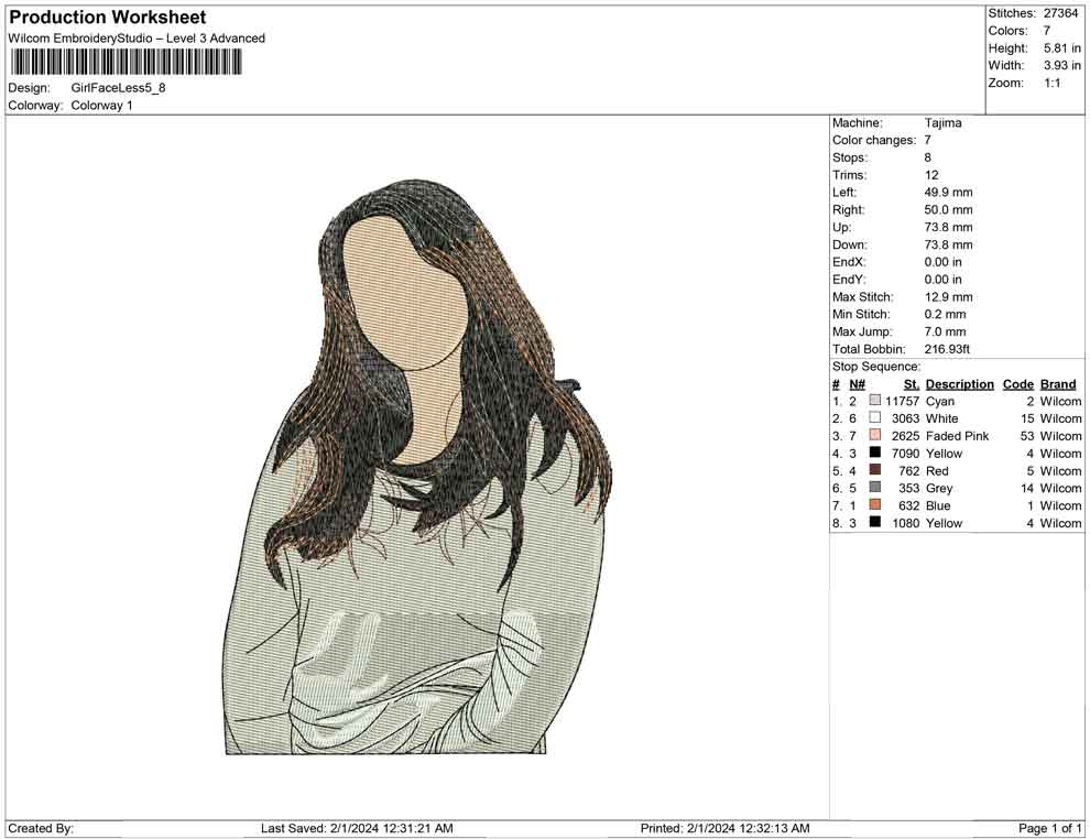 Girl Faceless embroidery designs