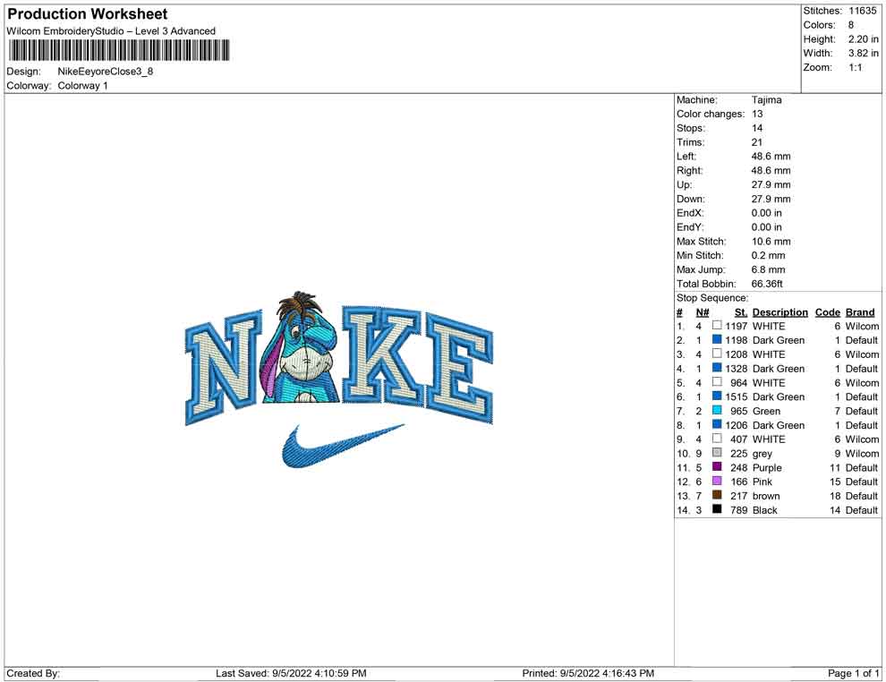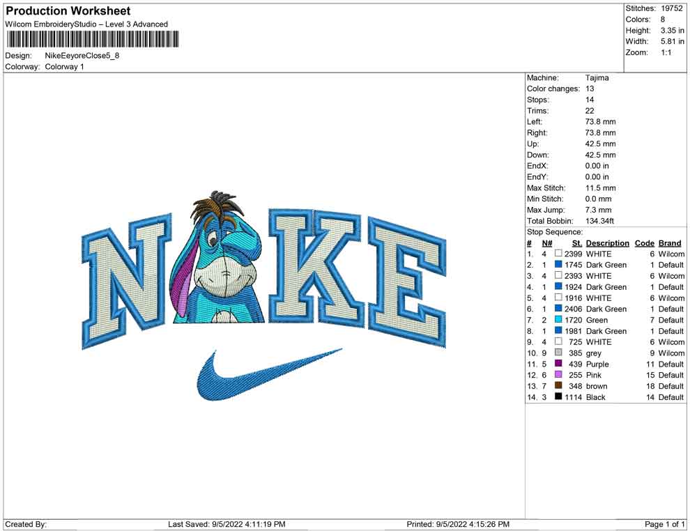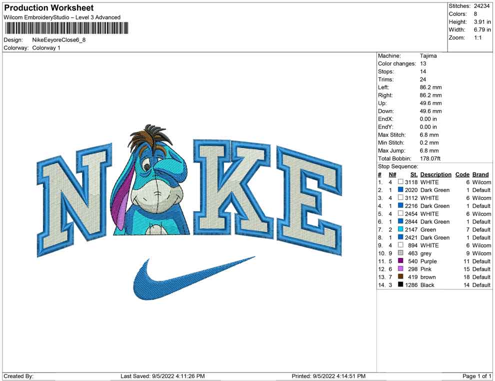 Nike EEyore Eye closed embroidery design