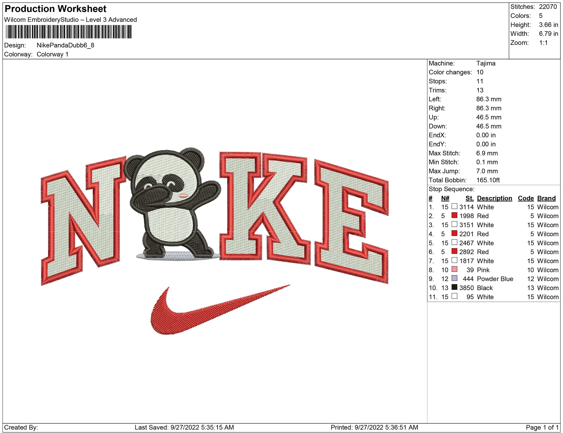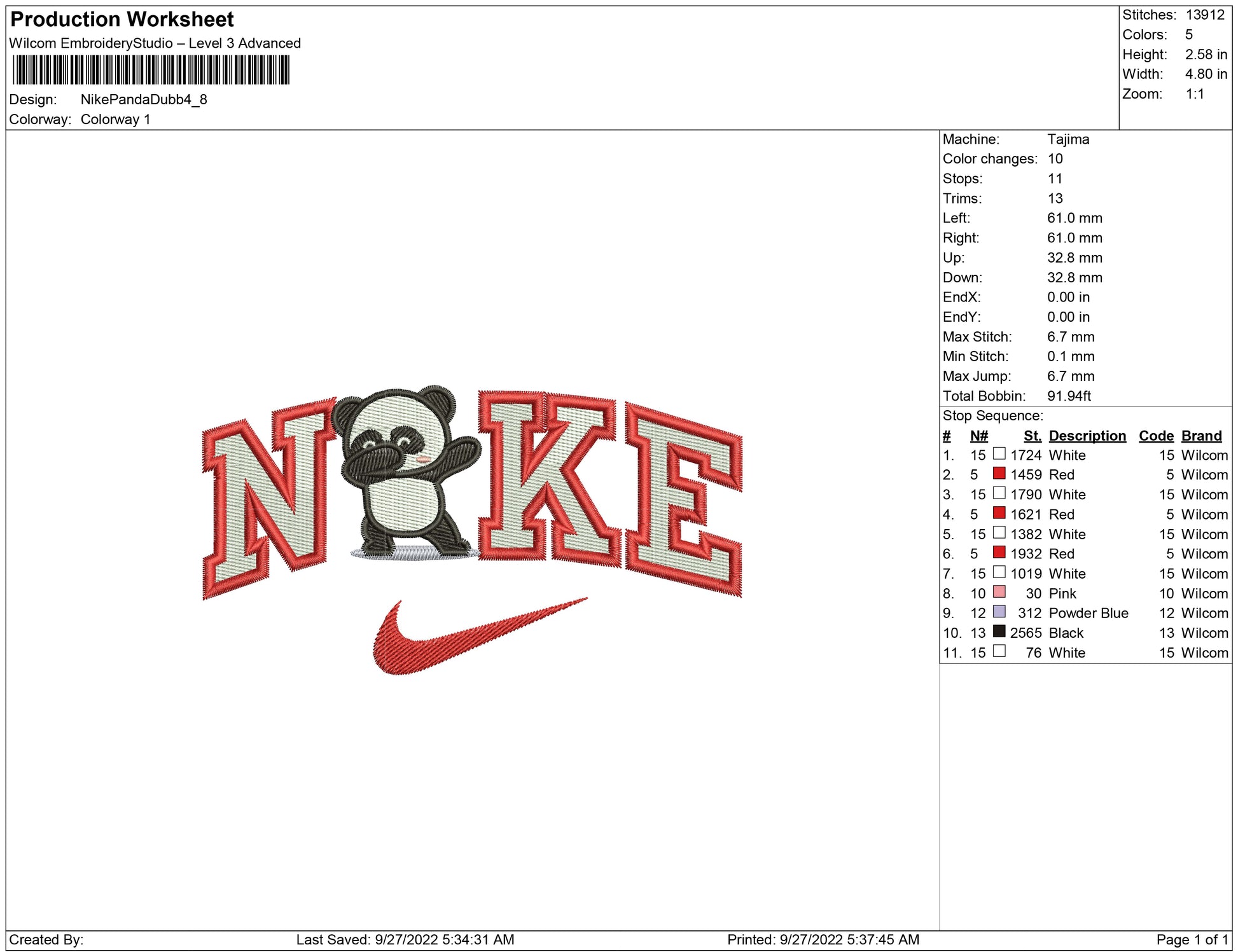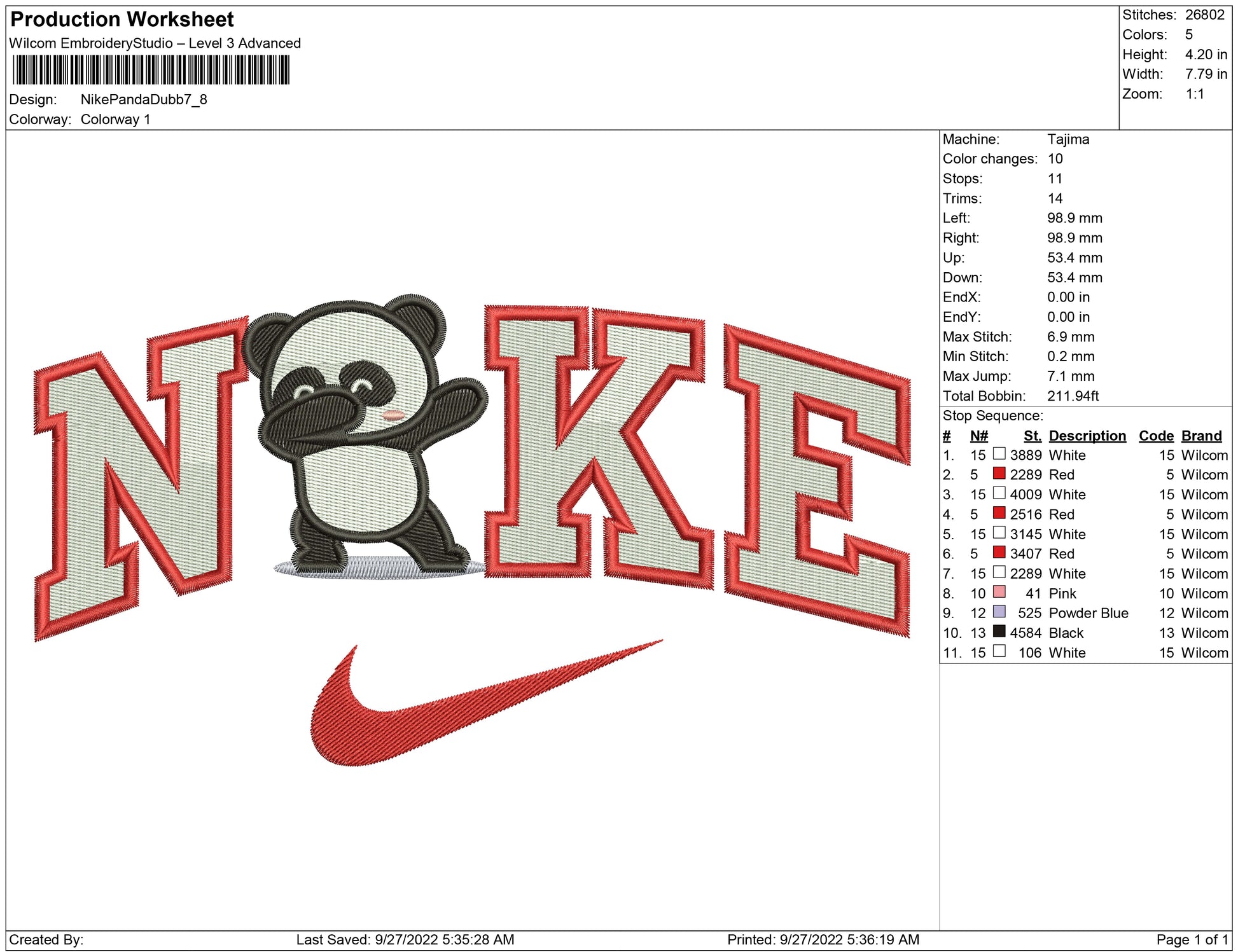 Nike Panda dubb embroidery design