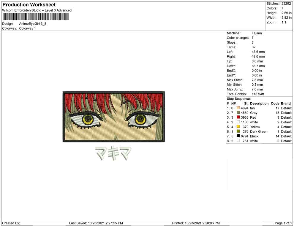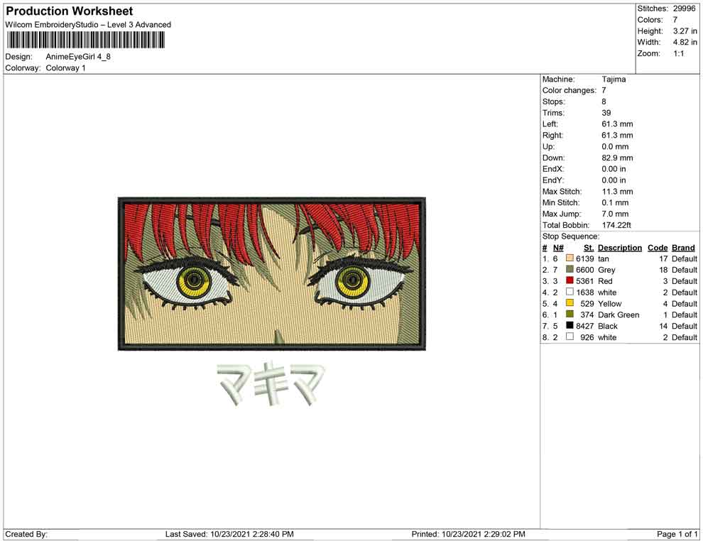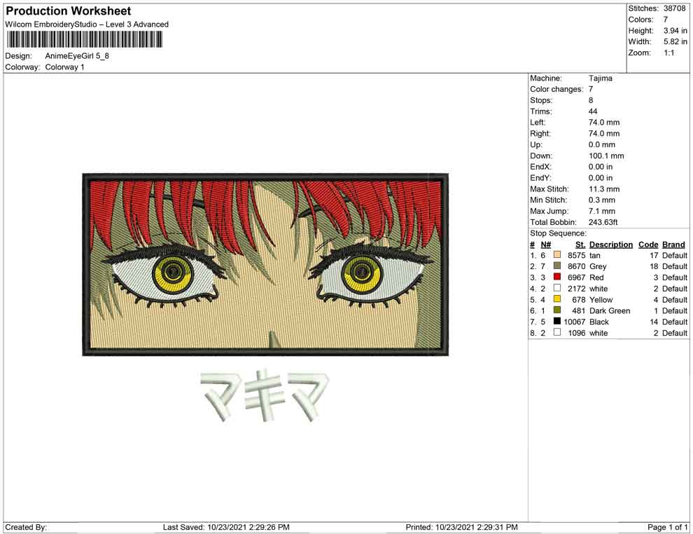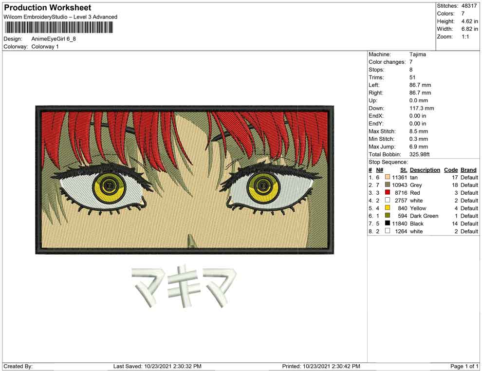 Anime Eye Girl embroidery design