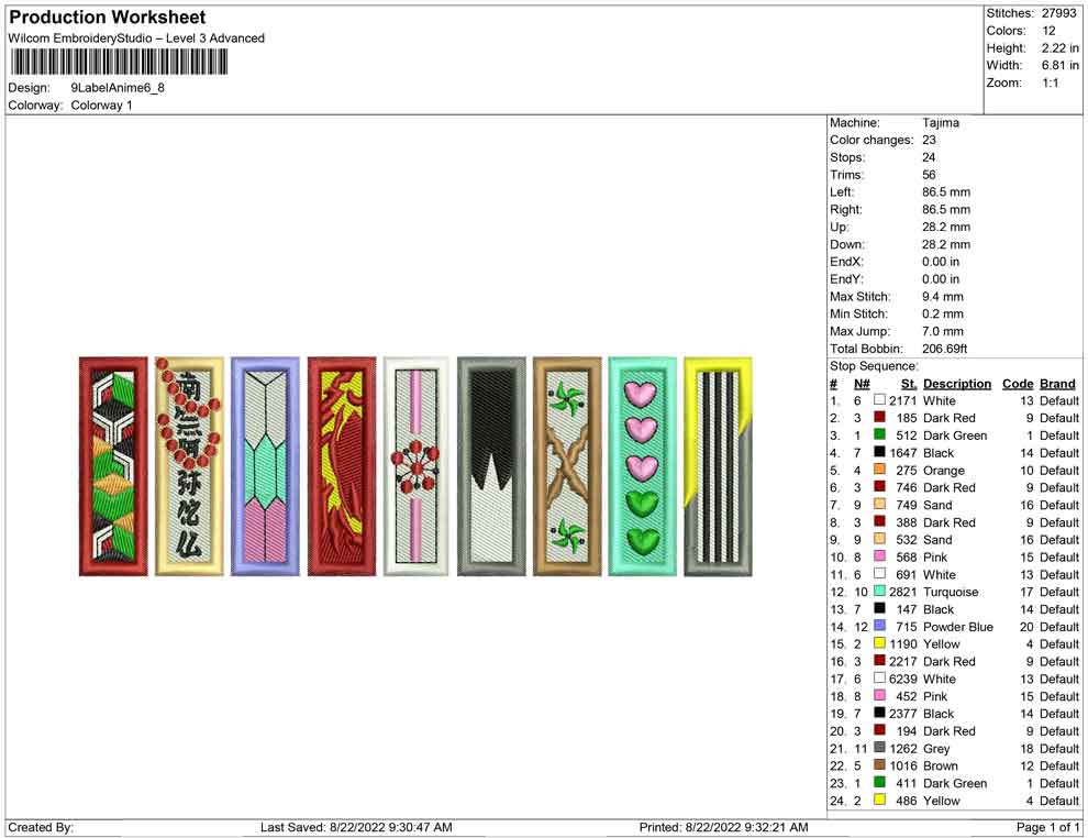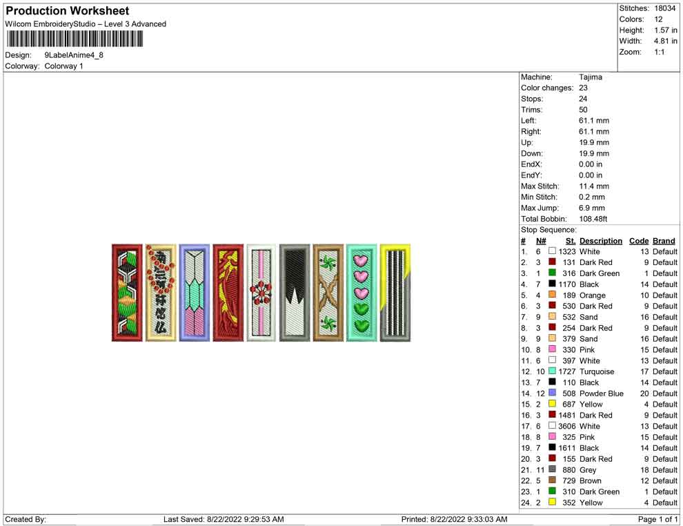 9 Label Anime embroidery design