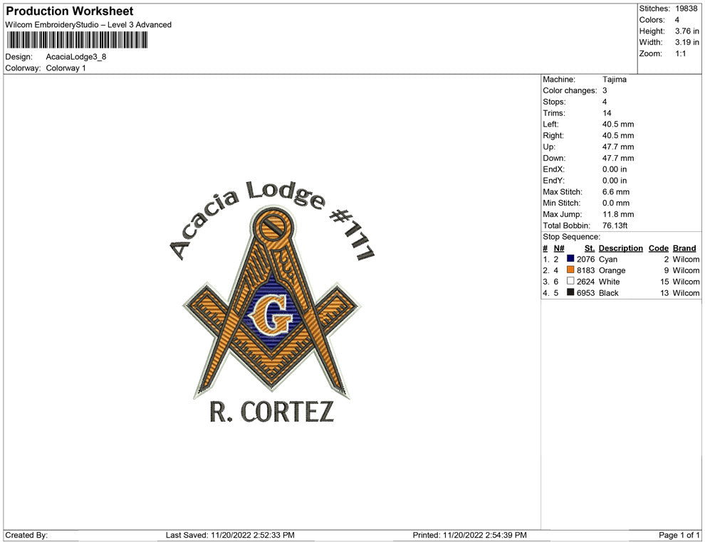 Roger est embroidery design