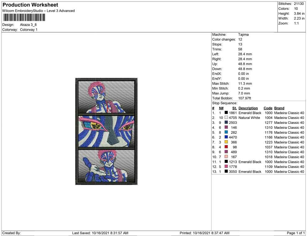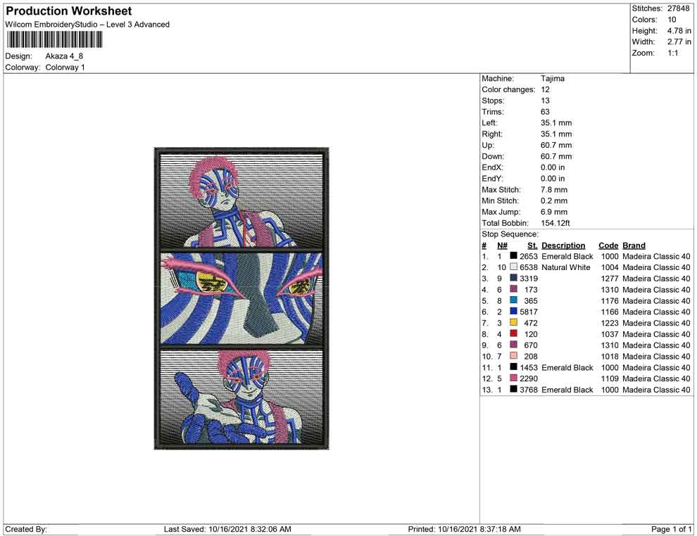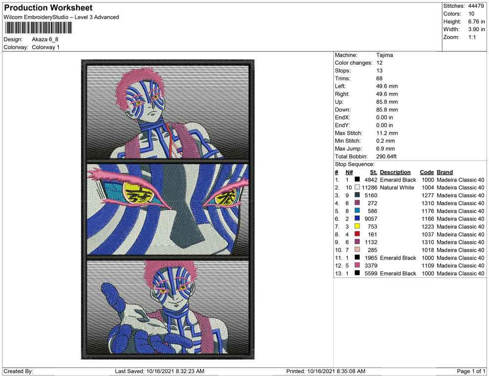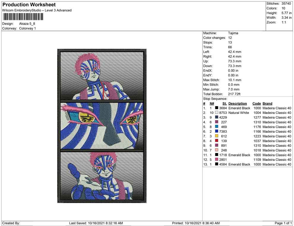 Akaza demon slayer embroidery design
