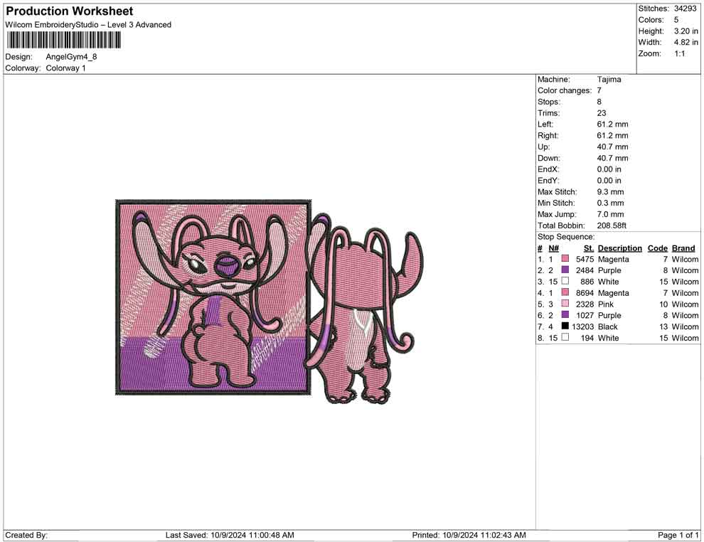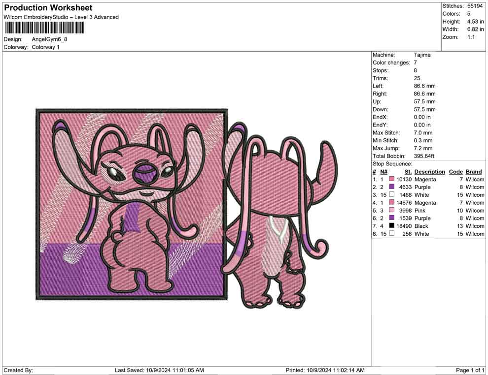 Angel Gym embroidery design