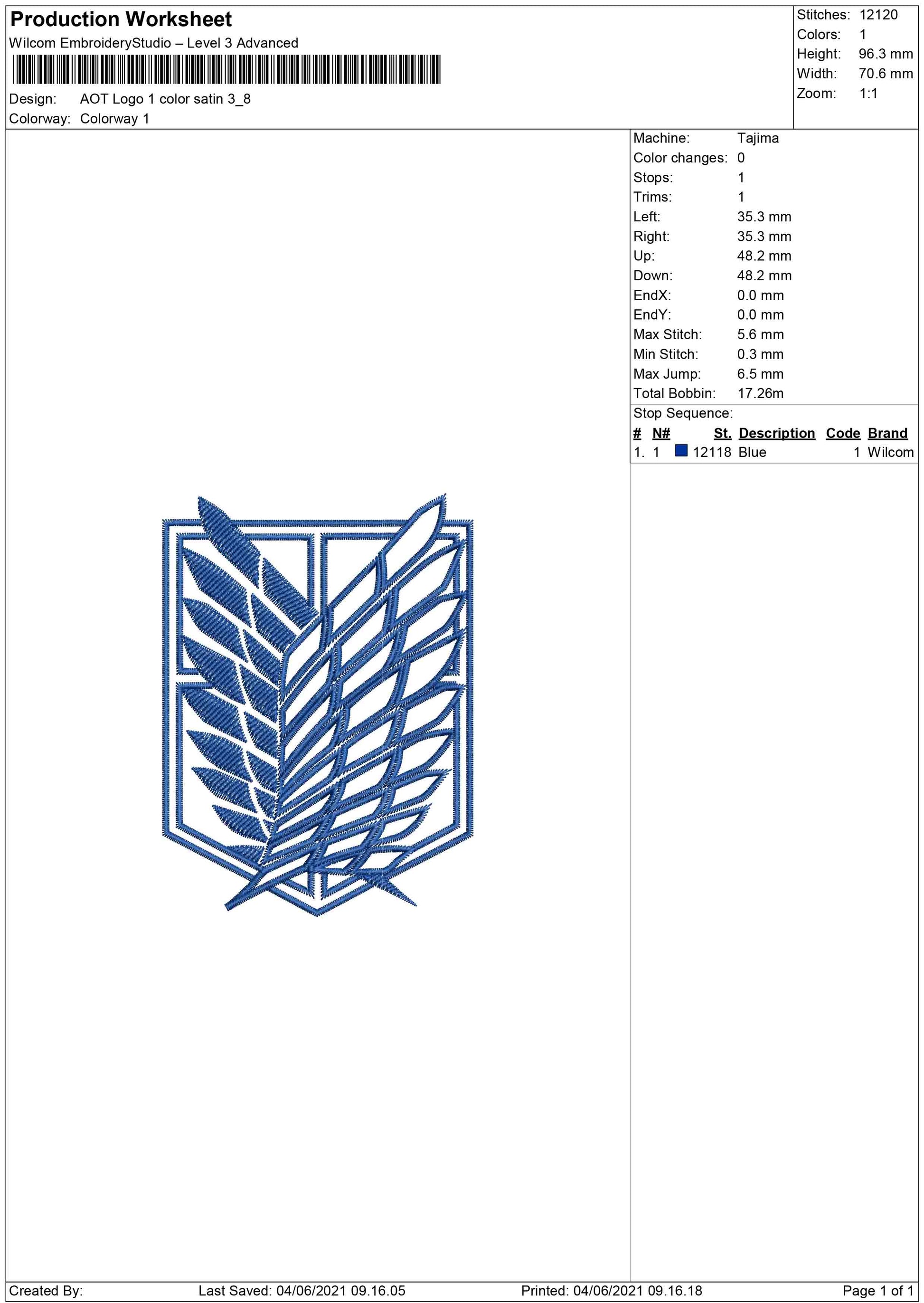 AOT Attack of Titan logo 1 color satin embroidery Design