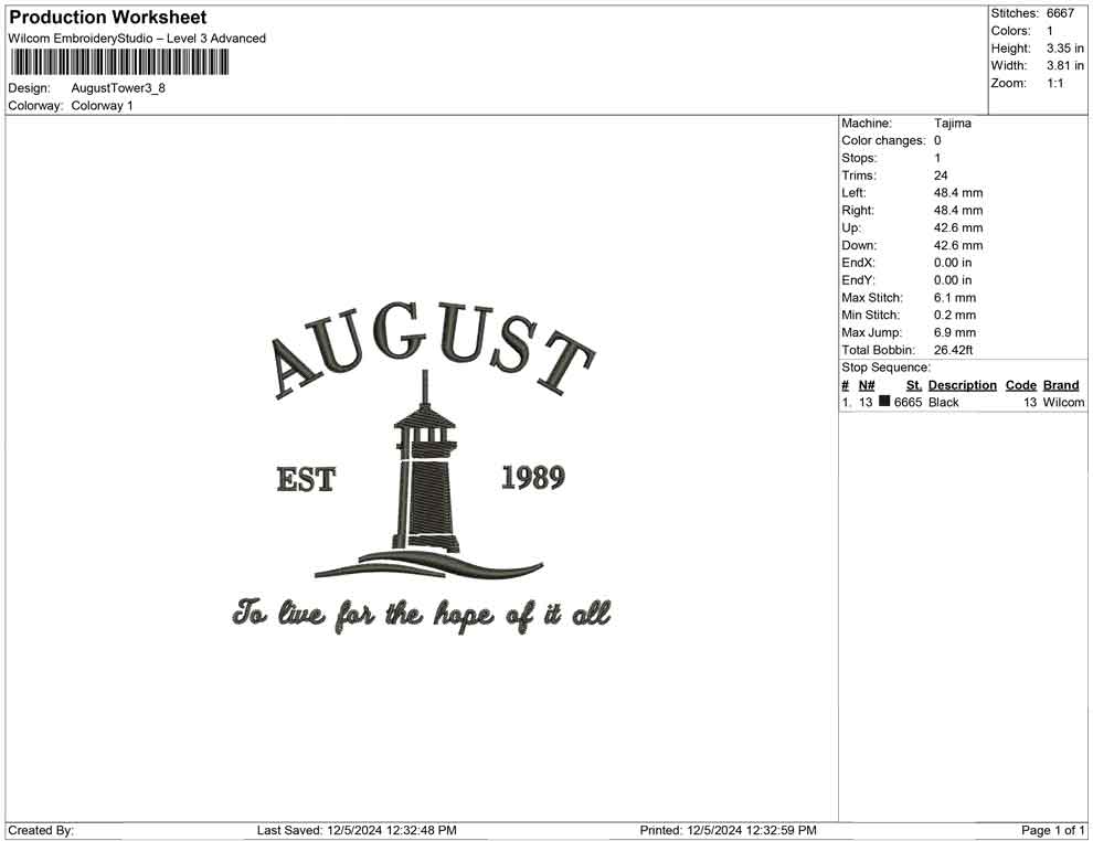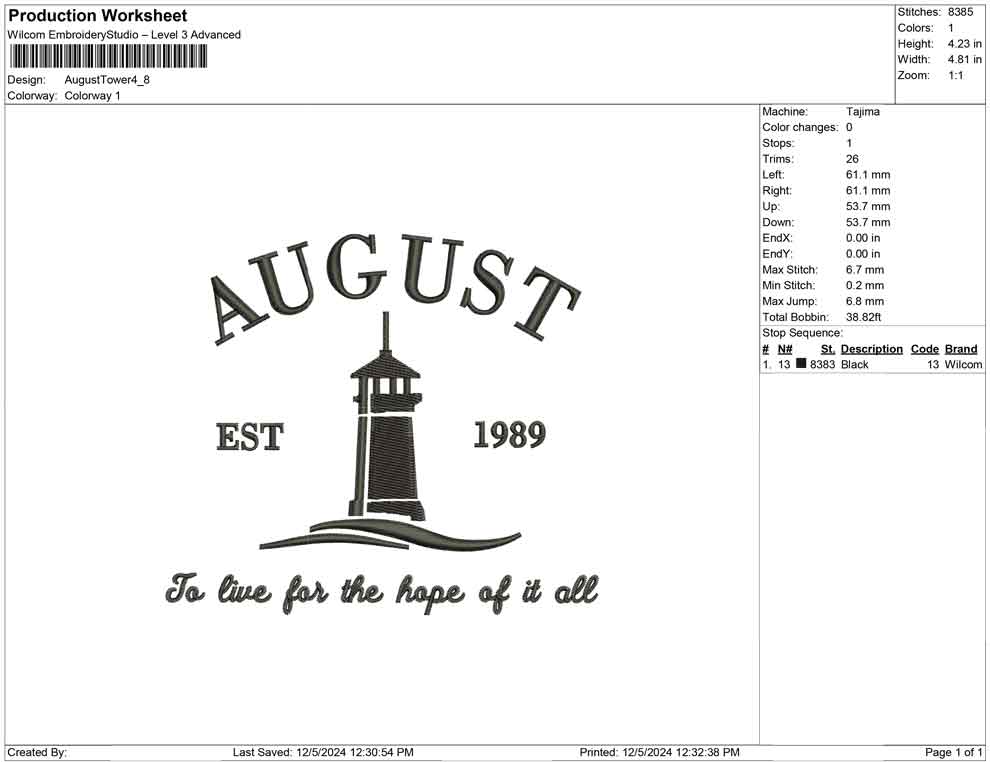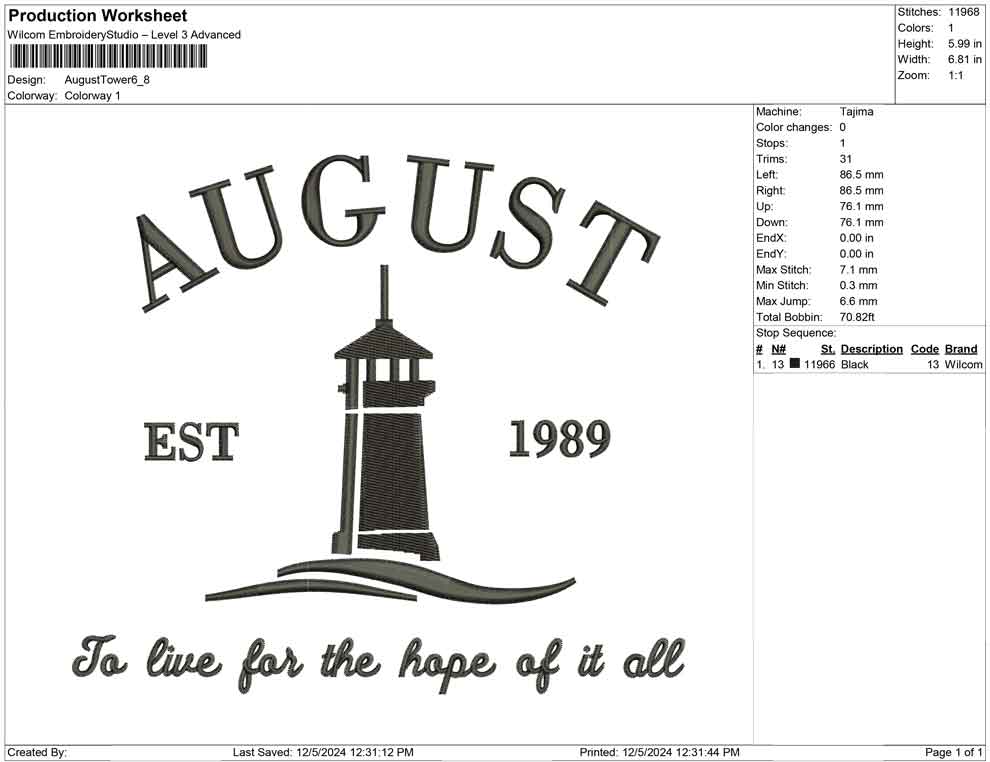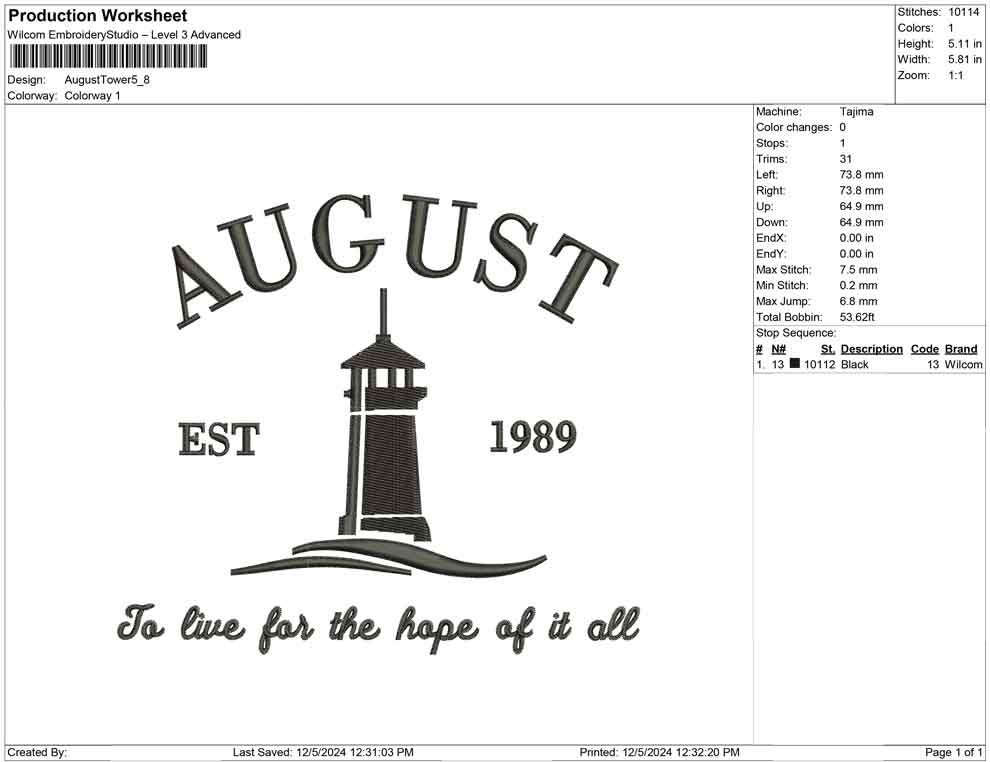August Tower embroidery design
