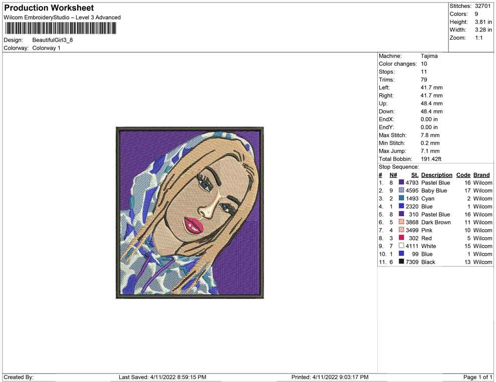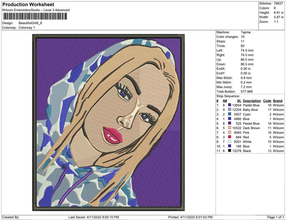 Beautiful Girl embroidery design