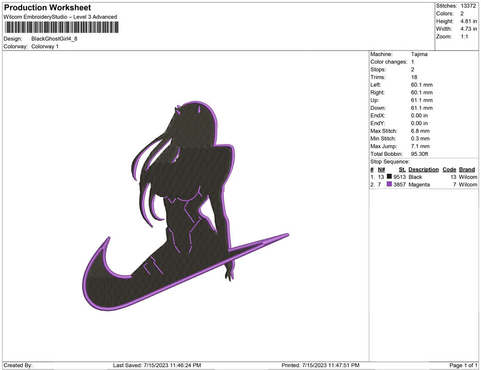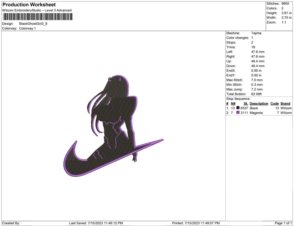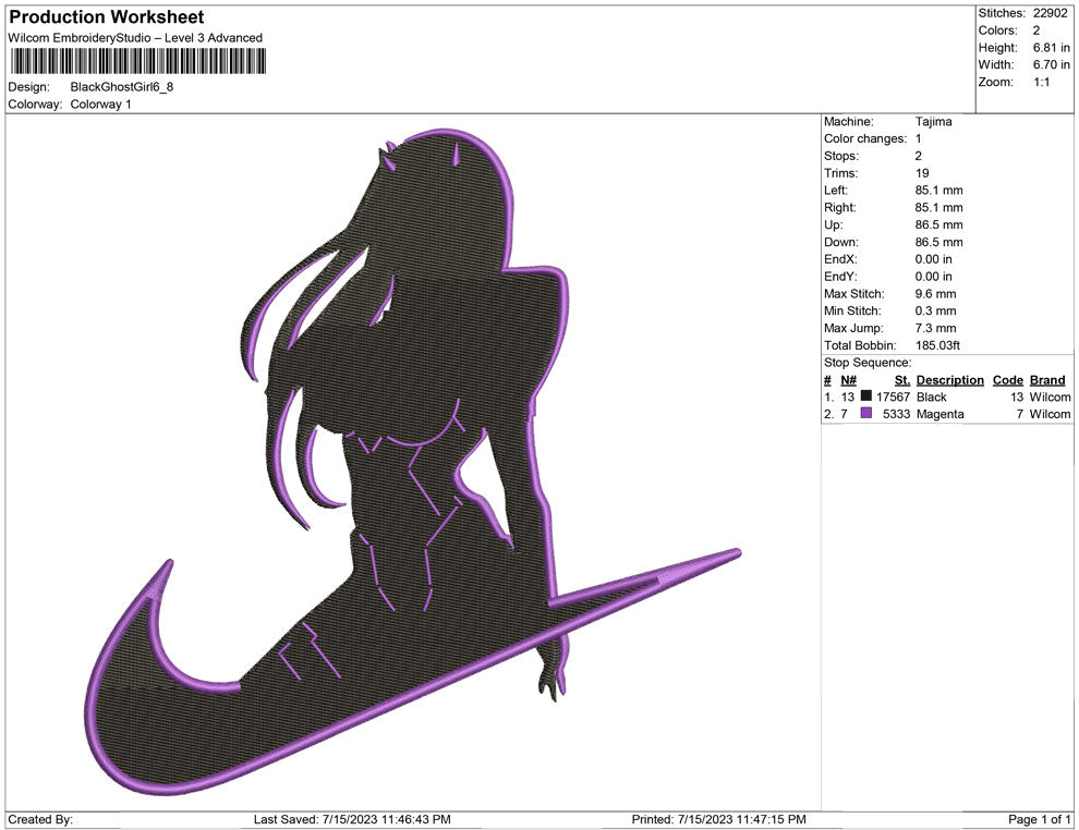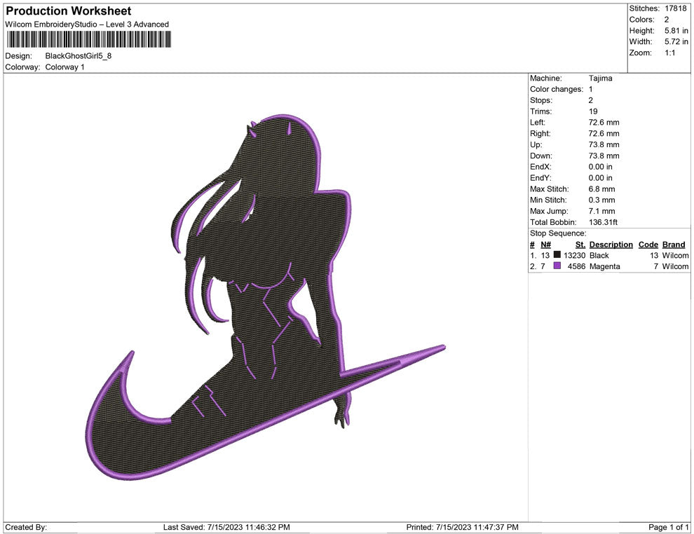 Black Ghost Girl Embroidery design