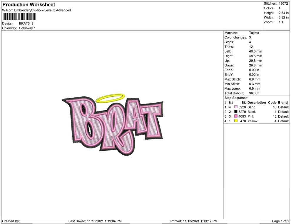 Brat embroidery design