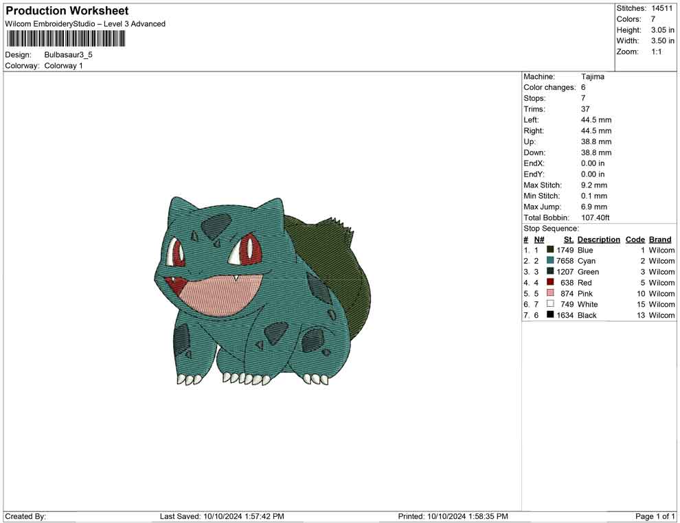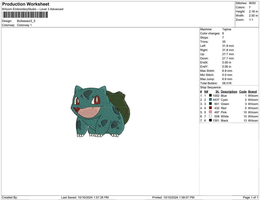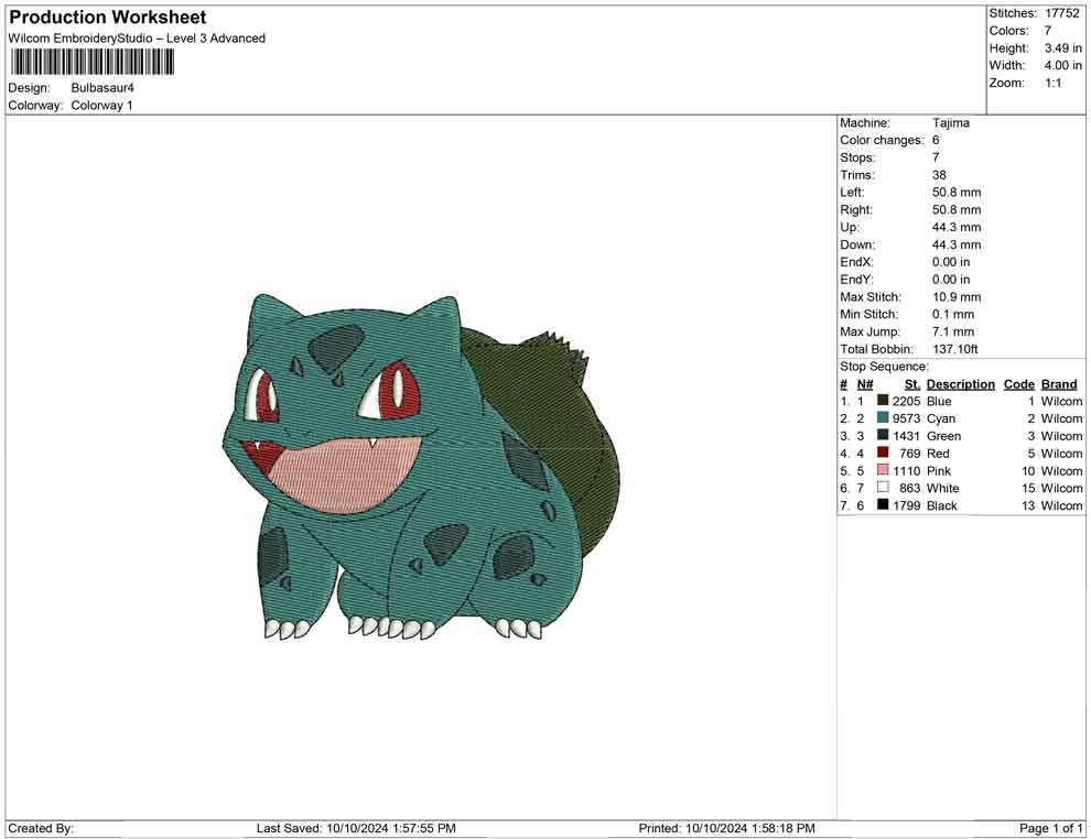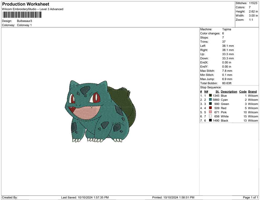 Bulbasaur B embroidery design