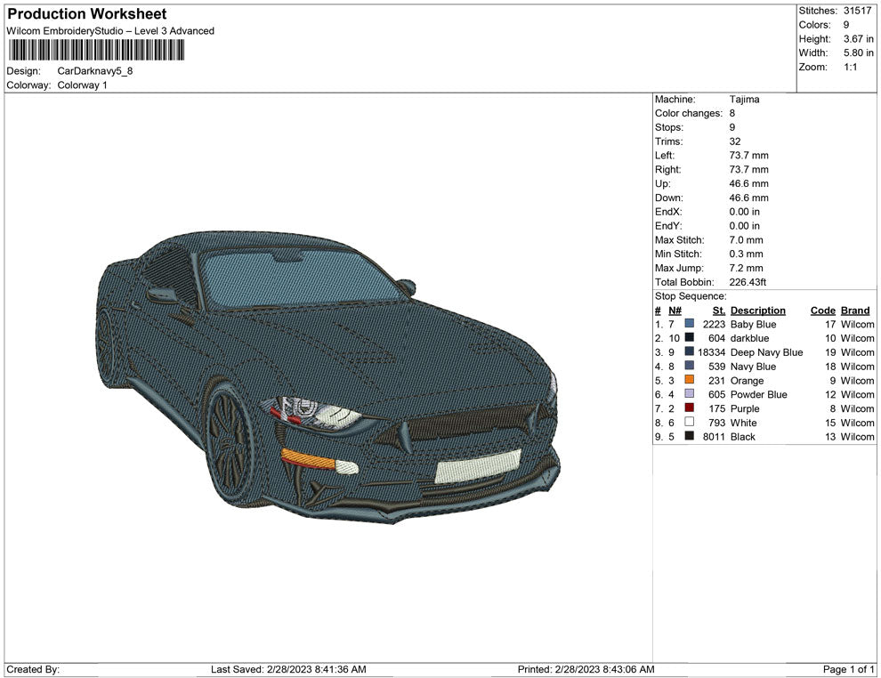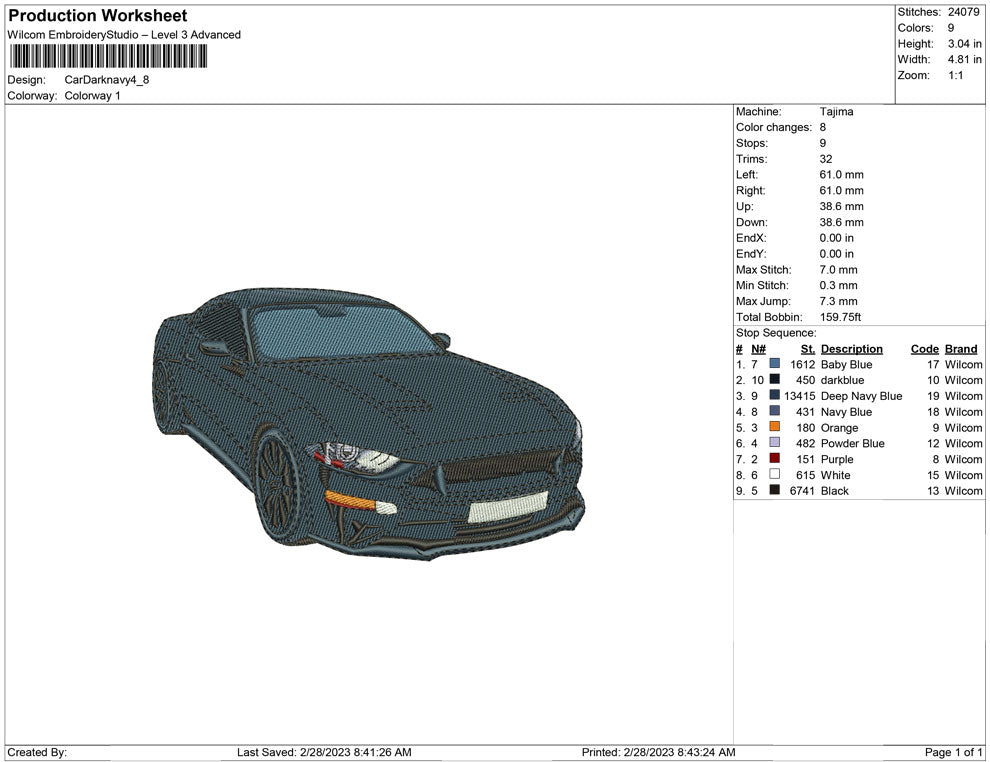 Car Dark Navy Embroidery design