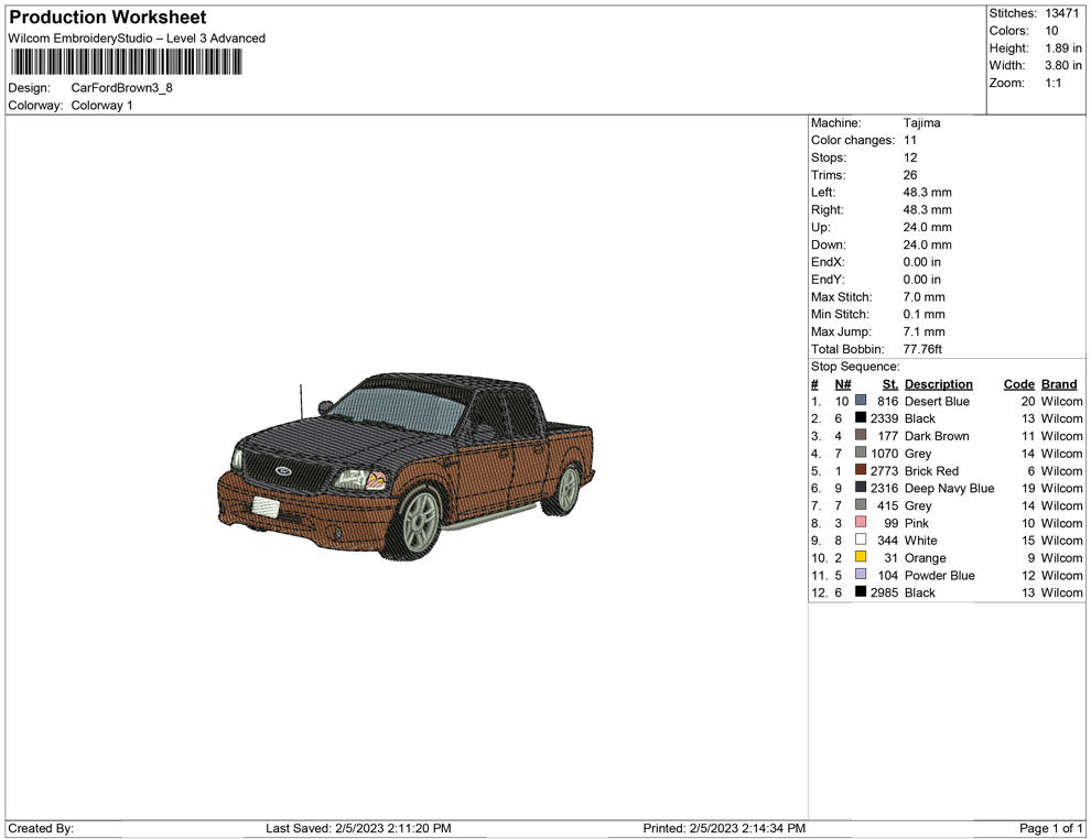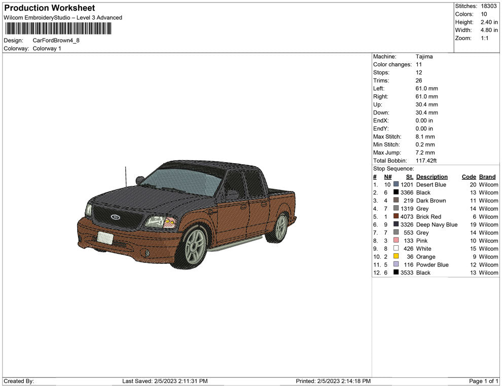 Car Ford Brown embroidery design