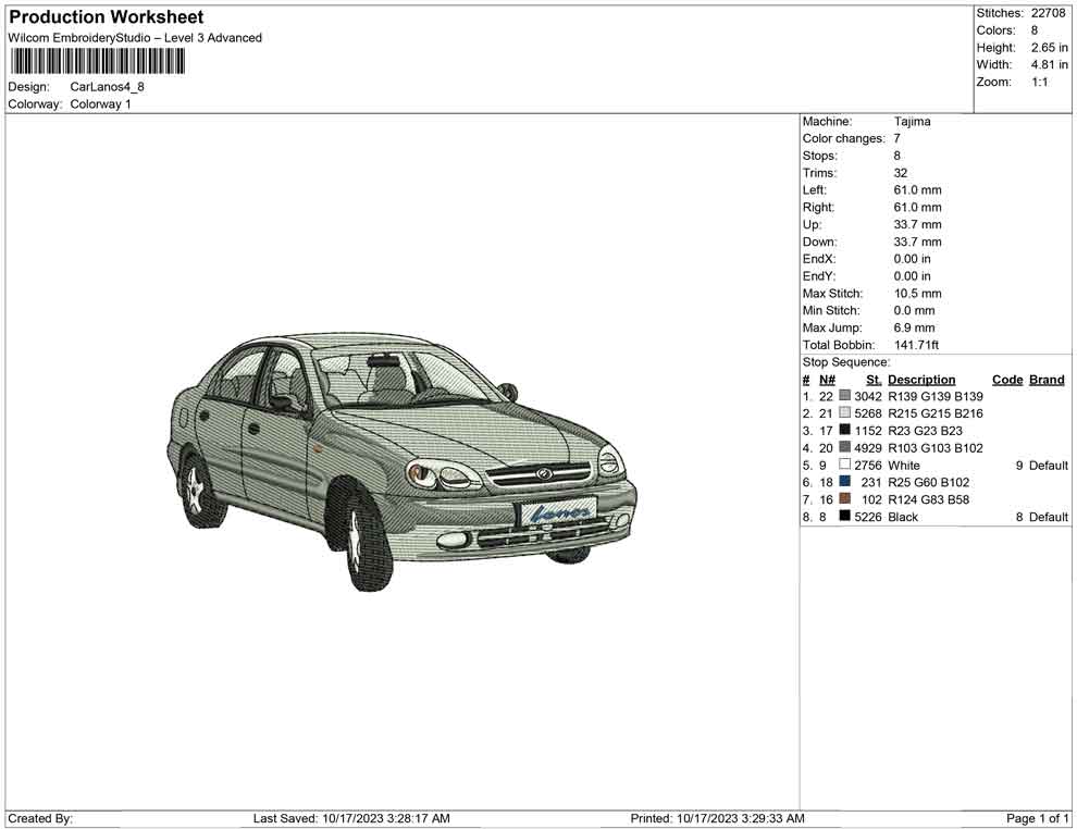 Car Lanos embroidery design