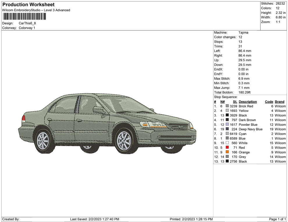 Car This embroidery design