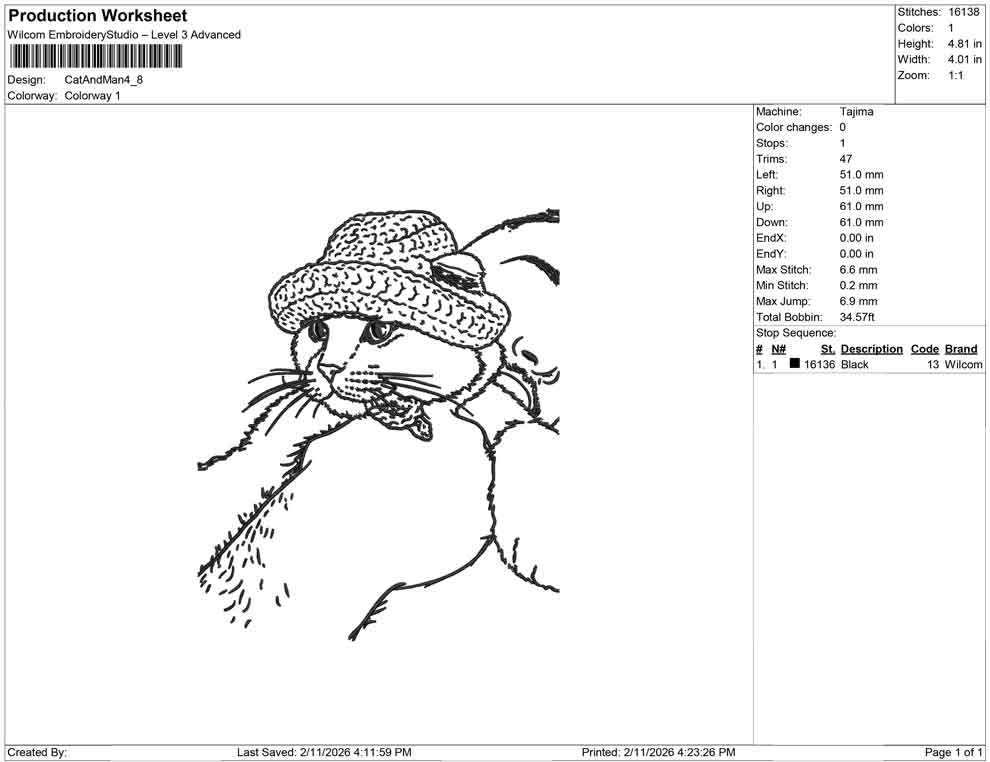 Cat And Man embroidery design