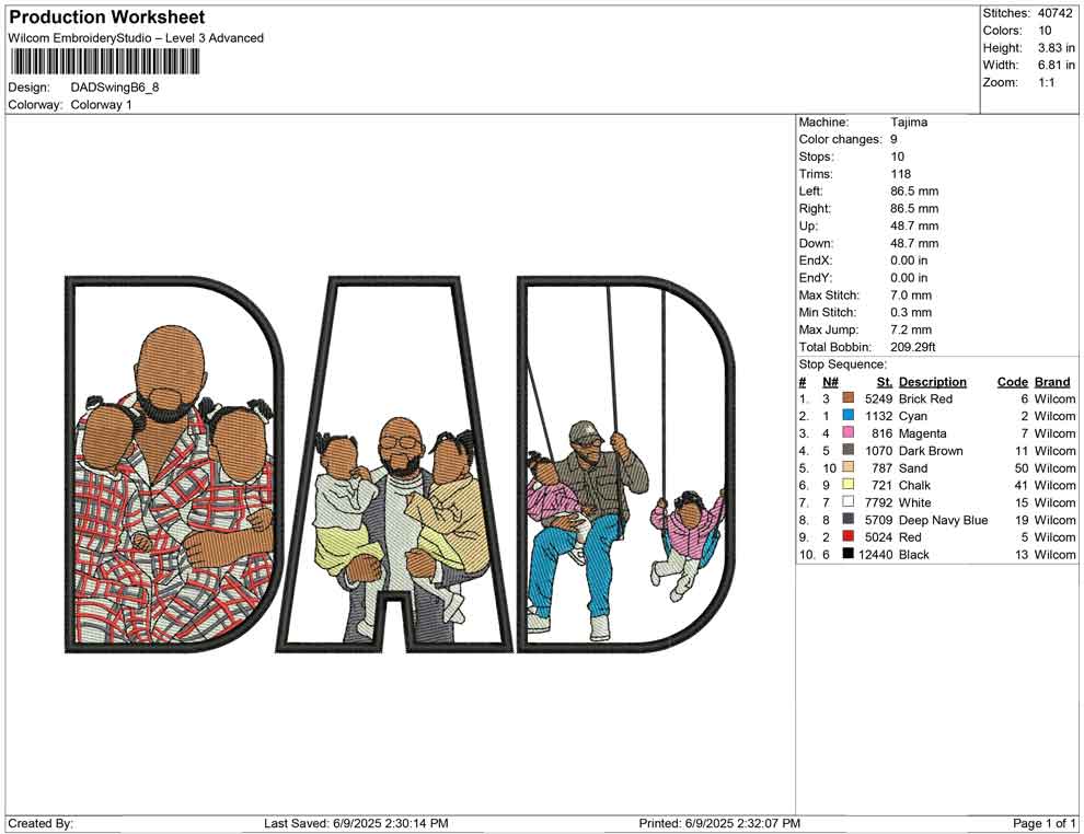 DAD Swing B embroidery design