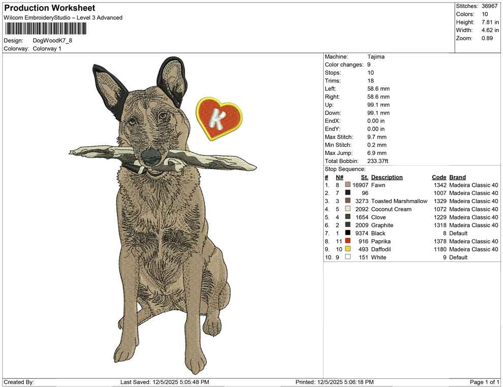 Dog Wood k embroidery design
