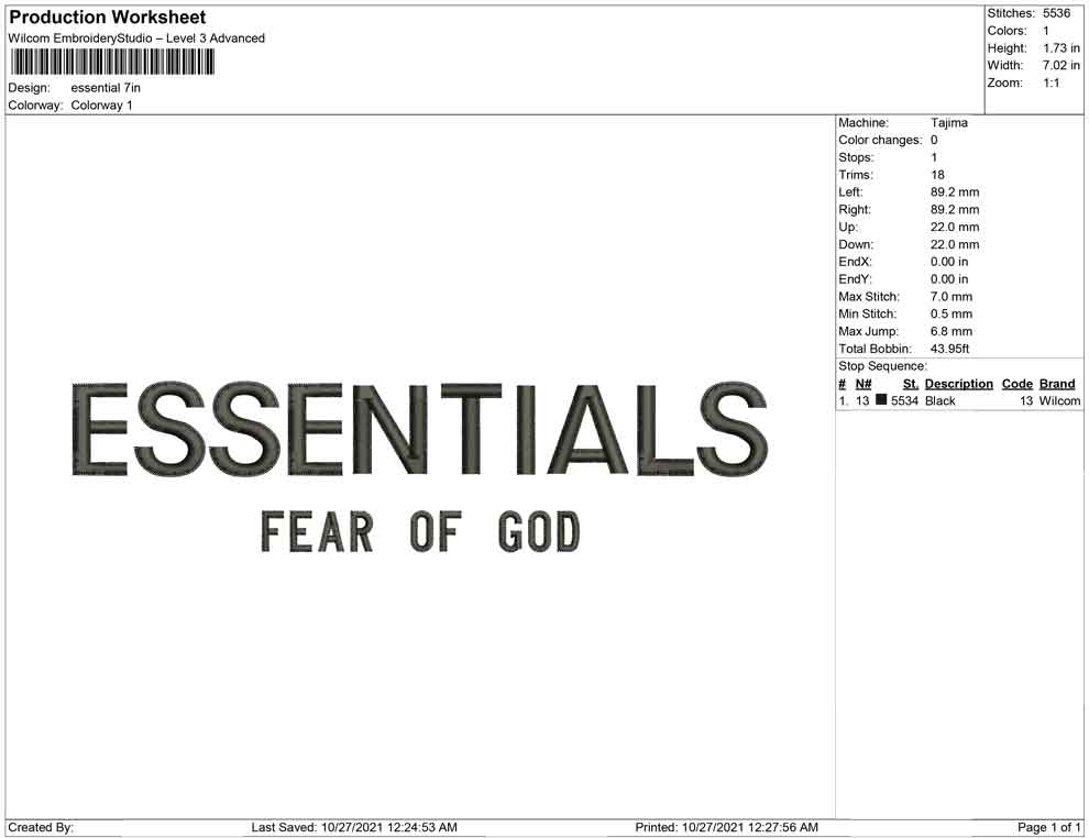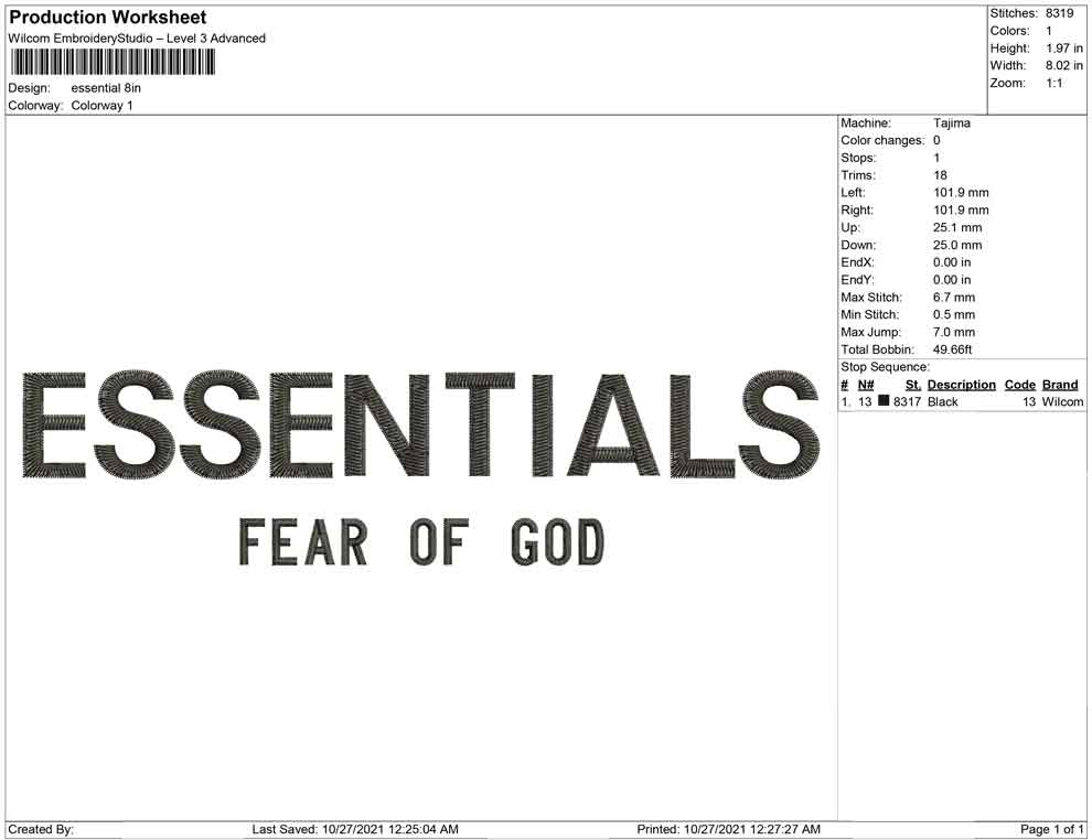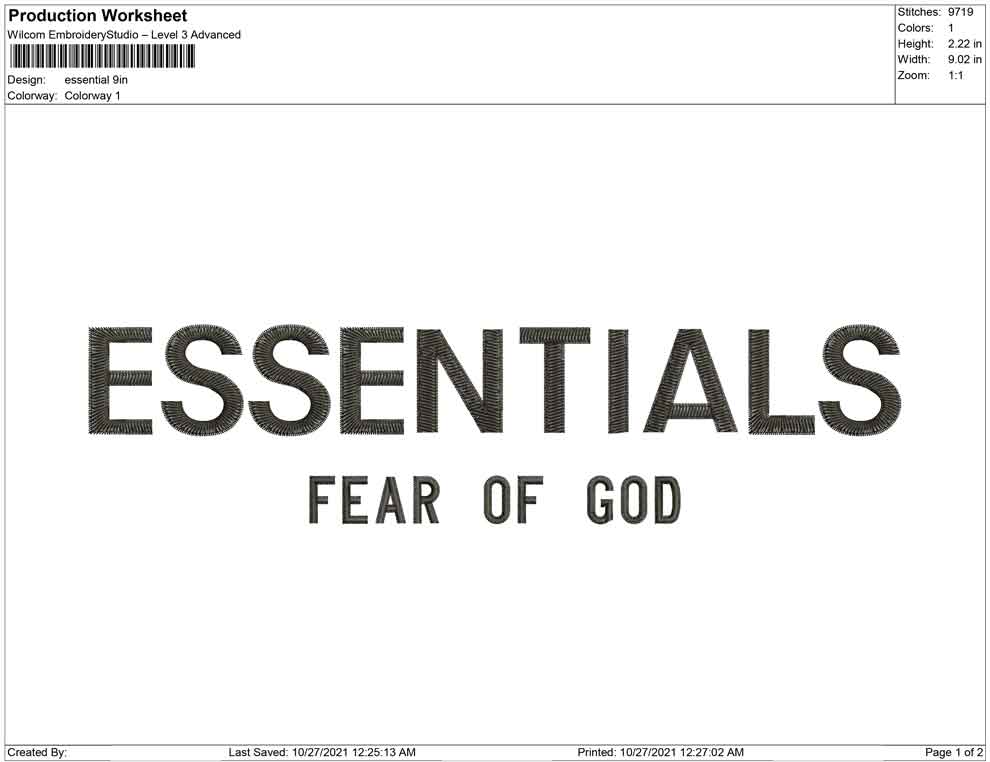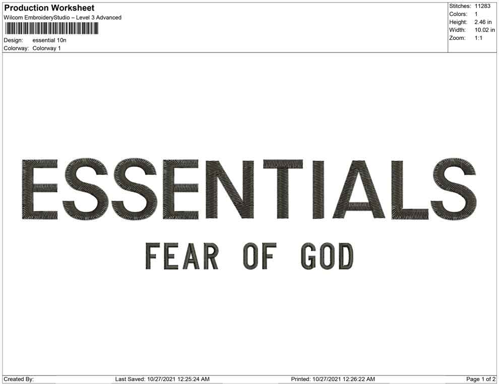 Essentials fear of god embroidery design