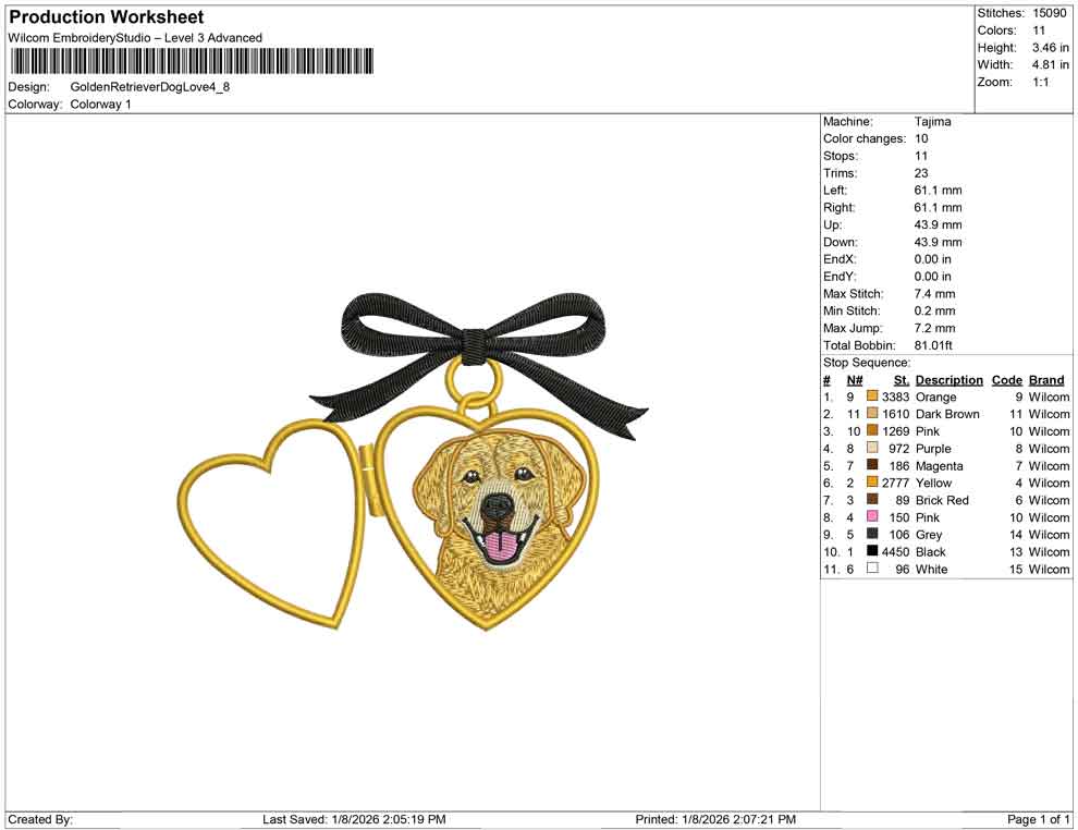Golden Retriever Dog Love Embroidery Design