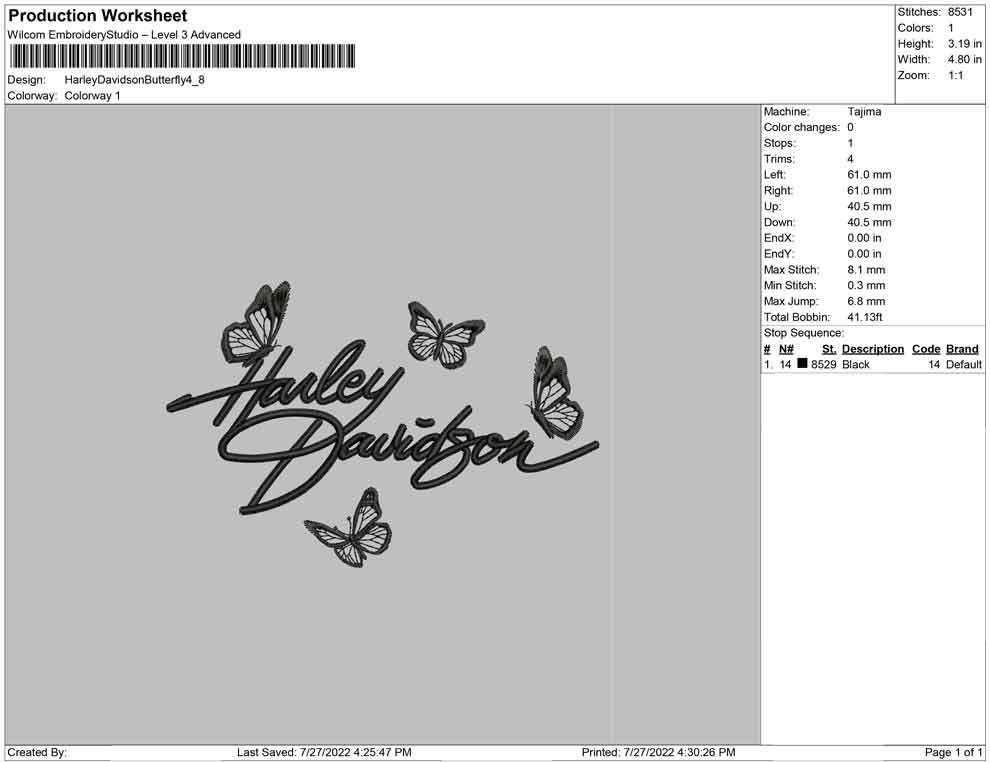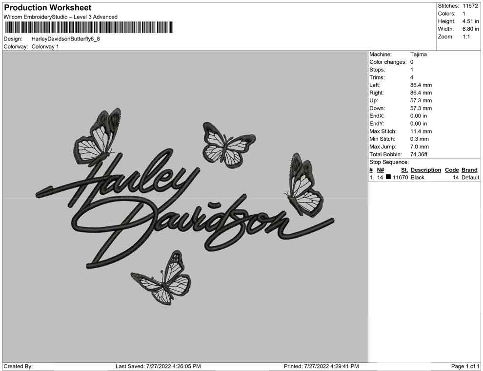 Harley Davidson Butterfly embroidery design