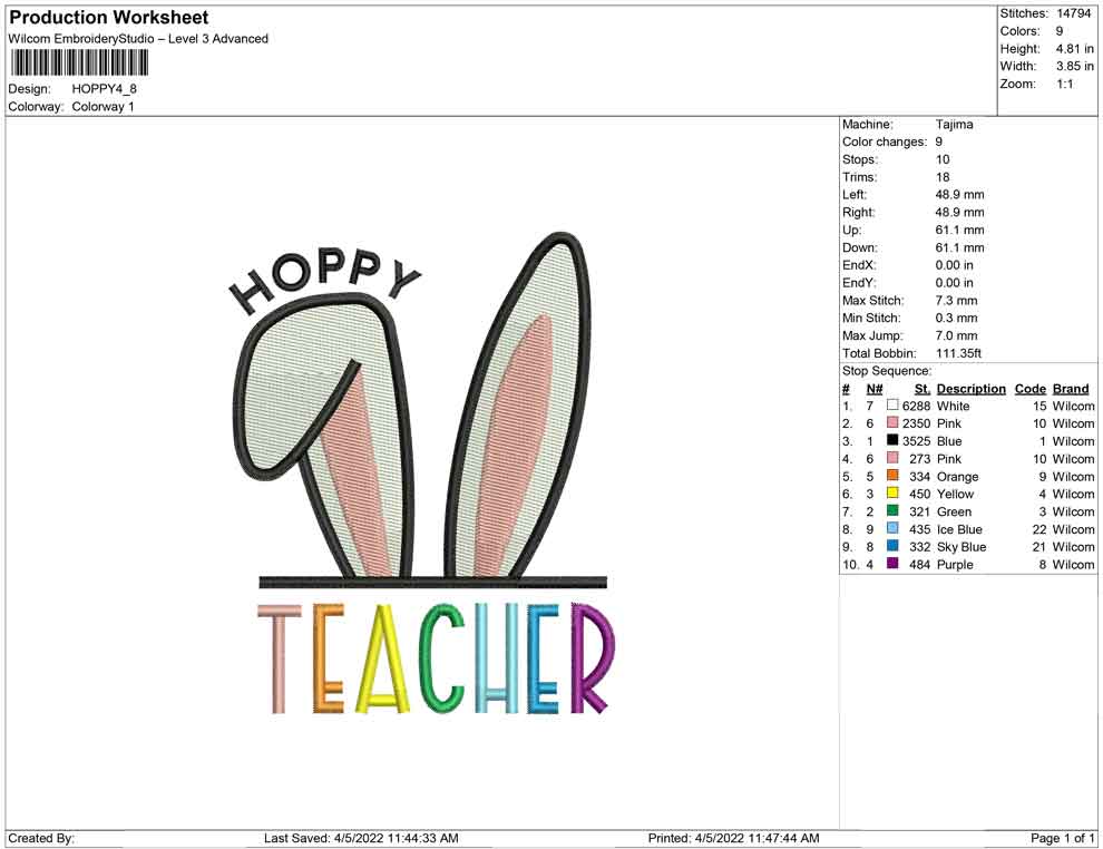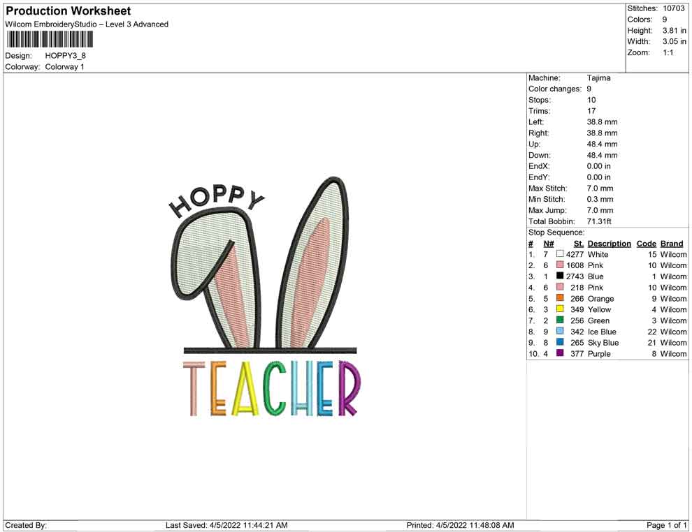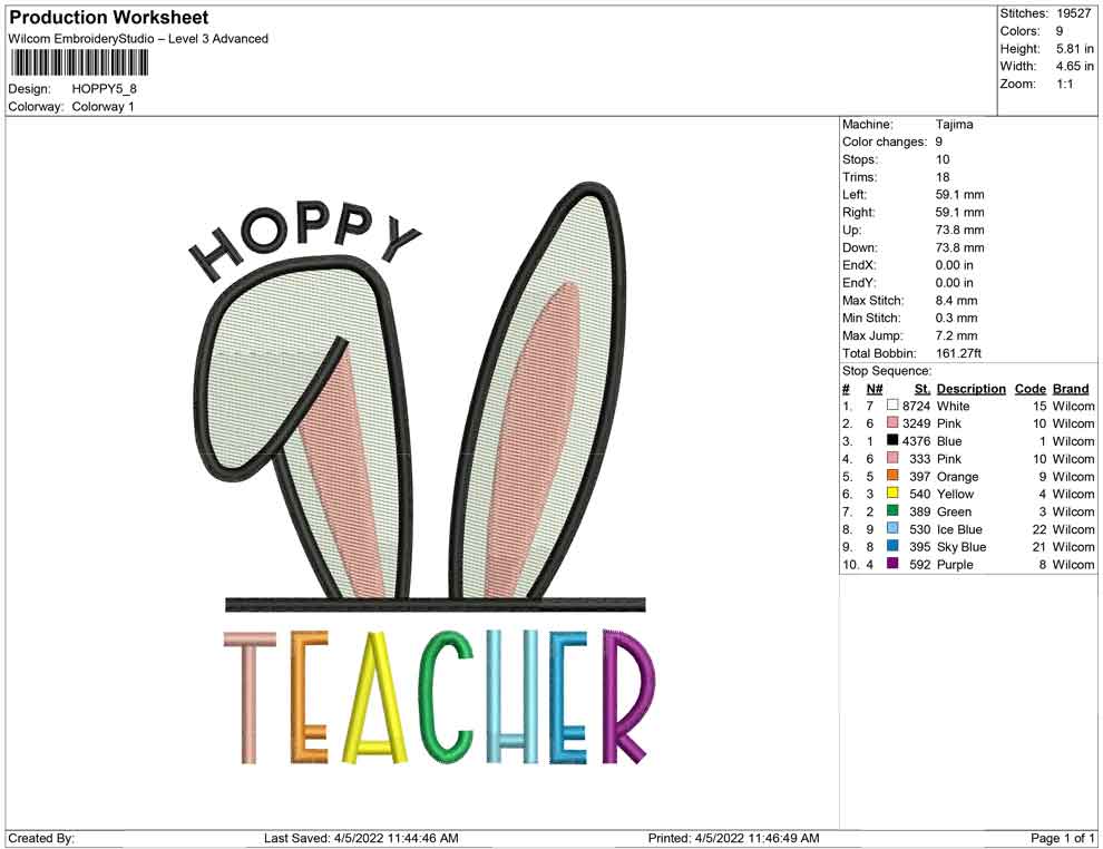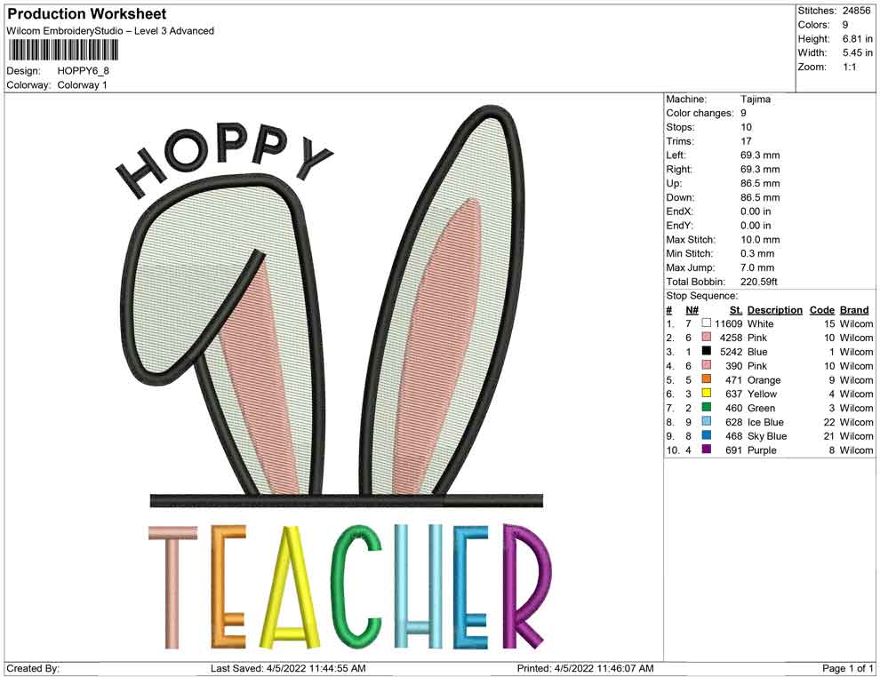 Hoppy Teacher embroidery design