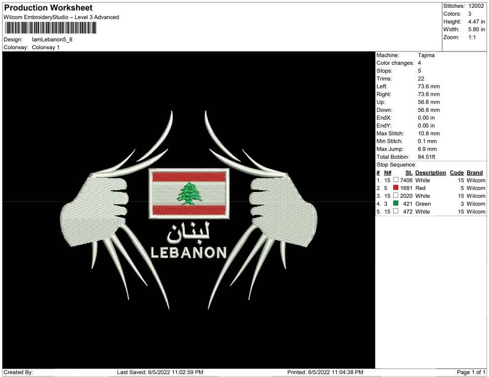 I'am Lebanon embroidery design