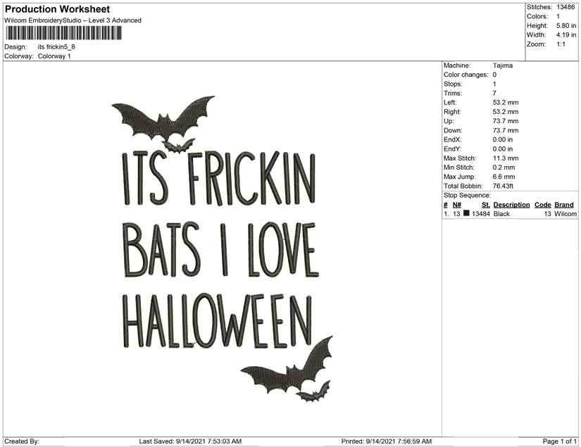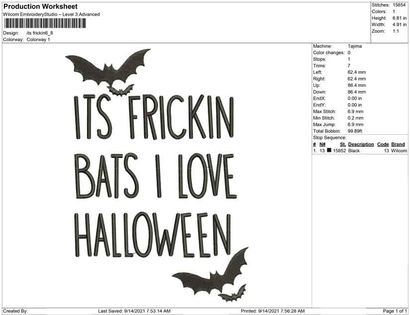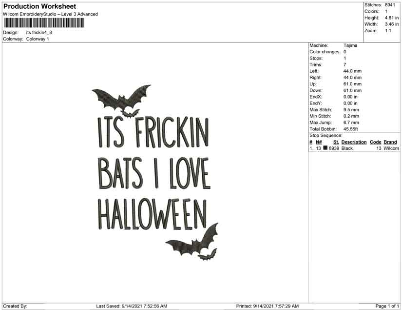 Its frickin i love halloween embroidery design