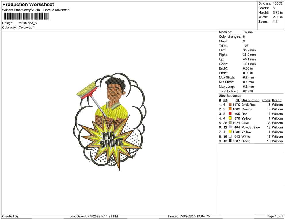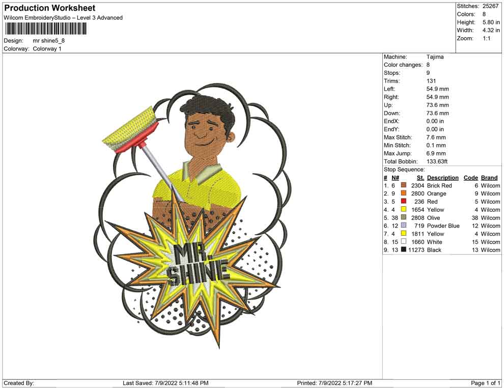 Mr Shine embroidery design