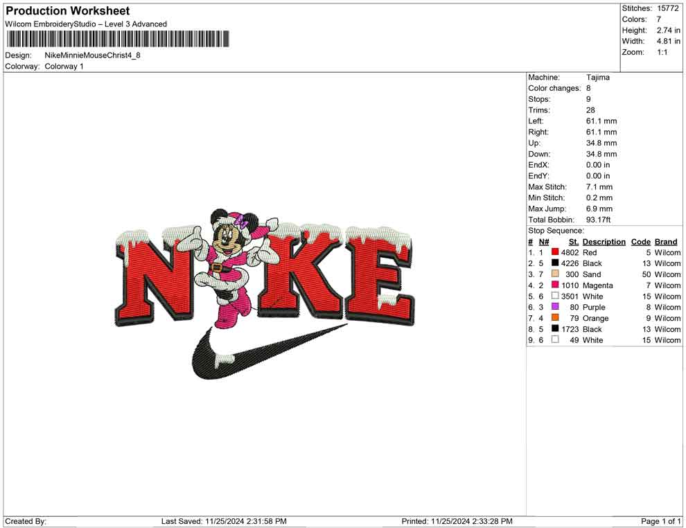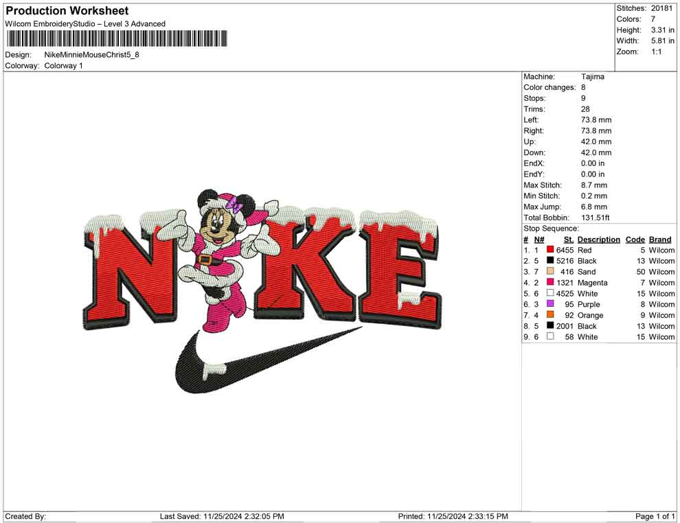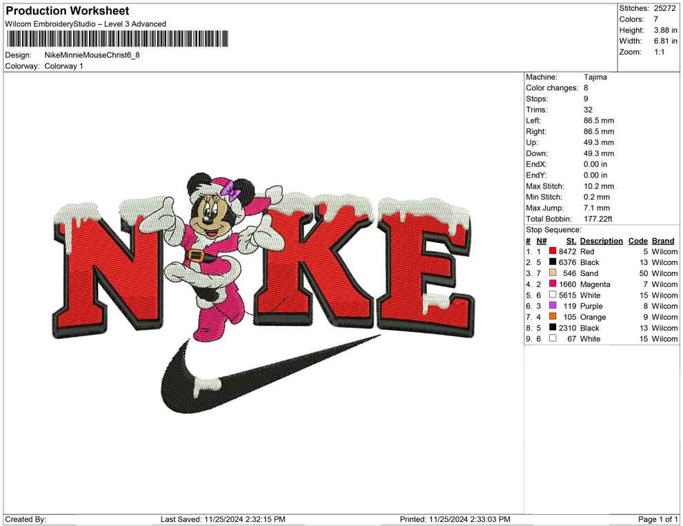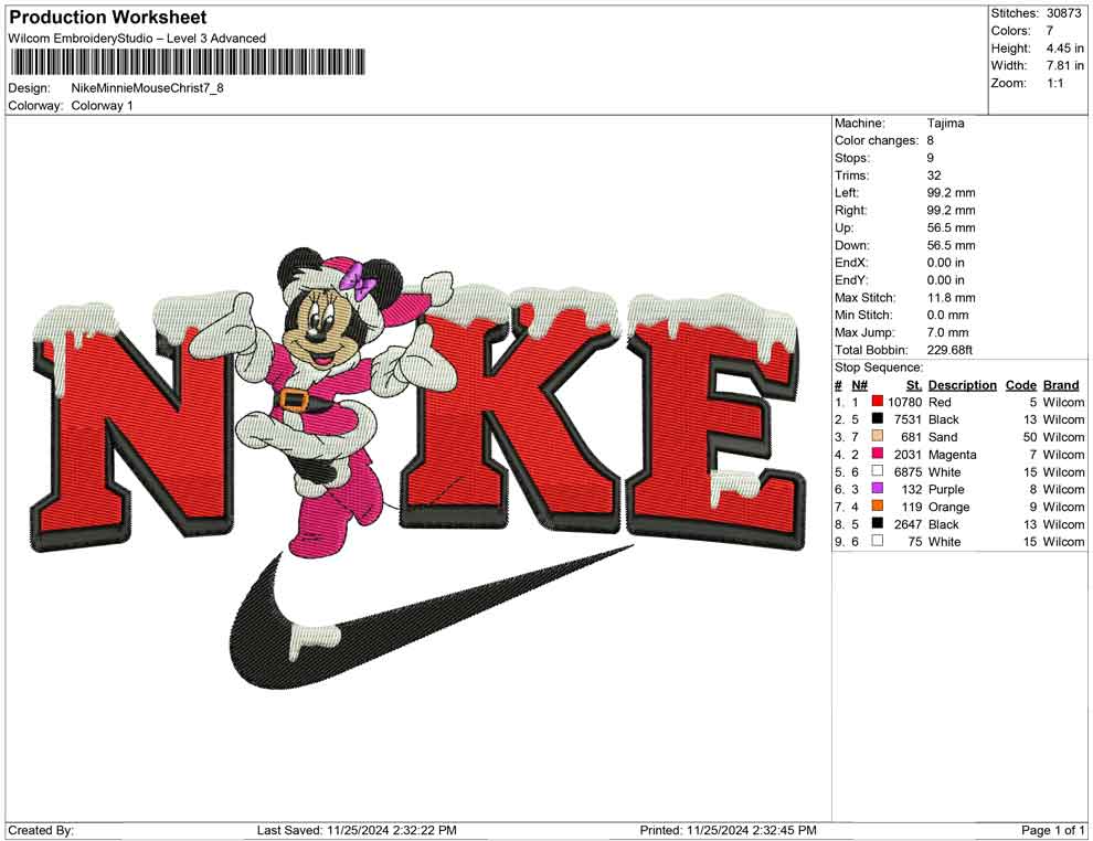 Nike Minnie Mouse Christ embroidery design