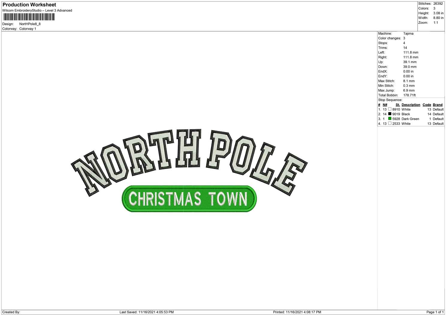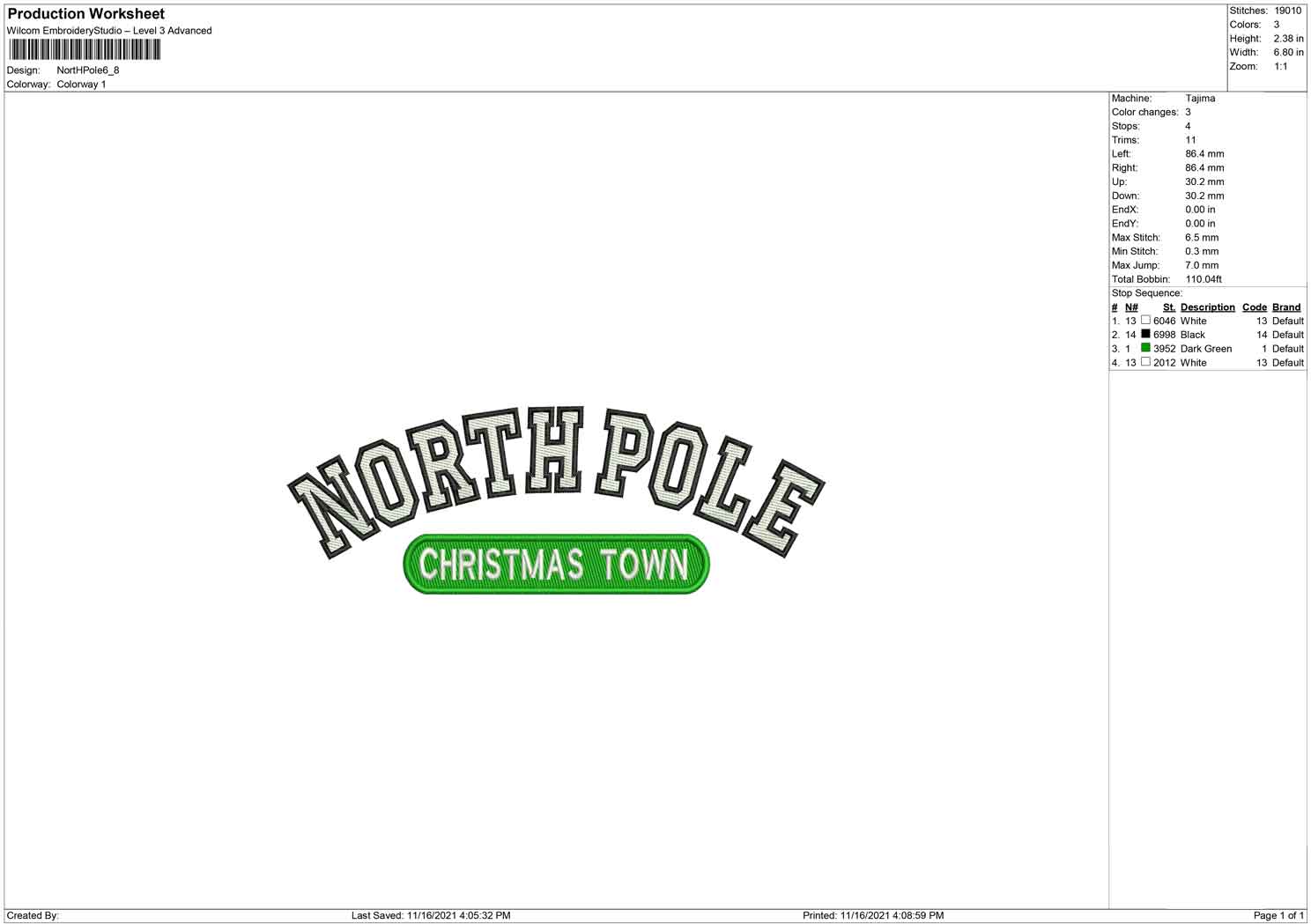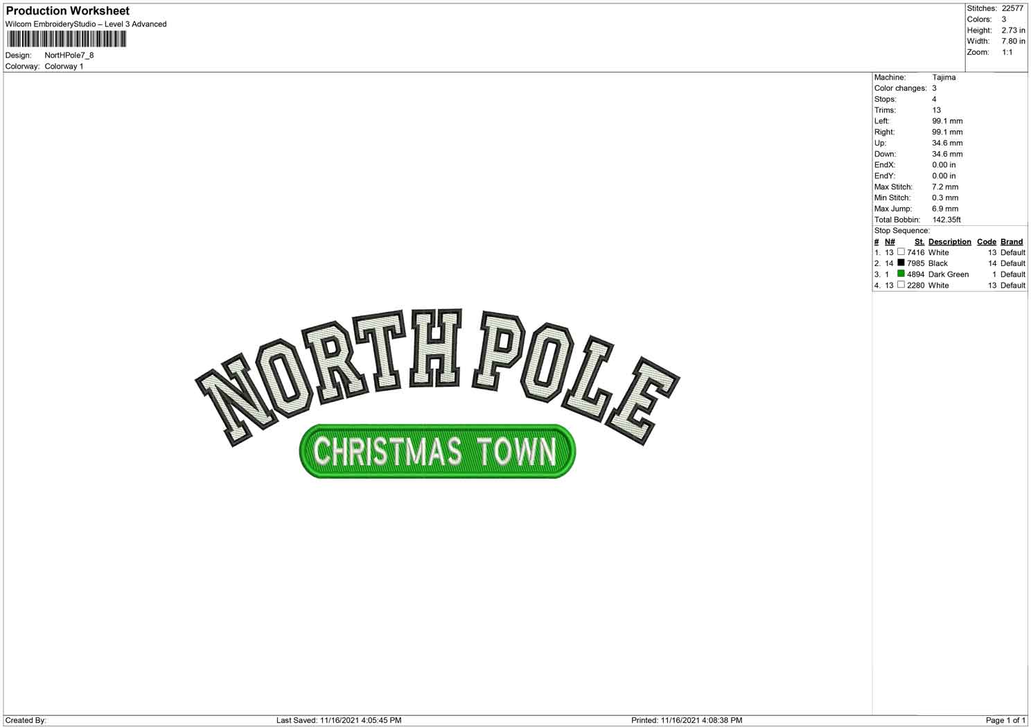 North Pole embroidery design