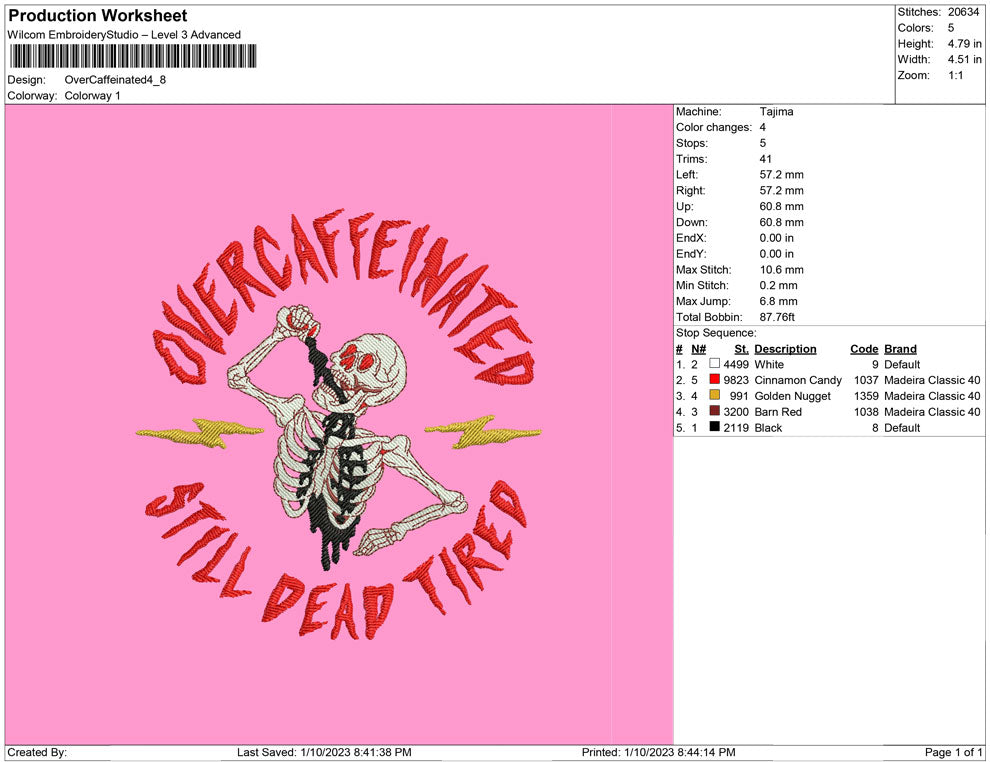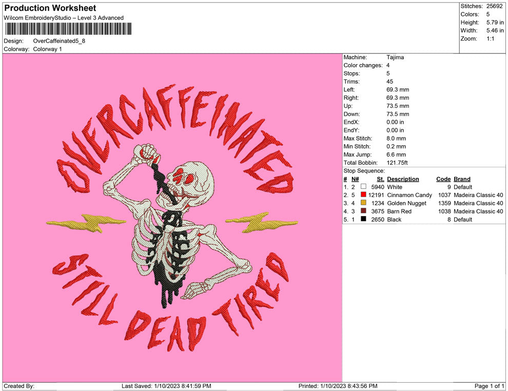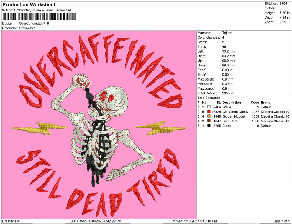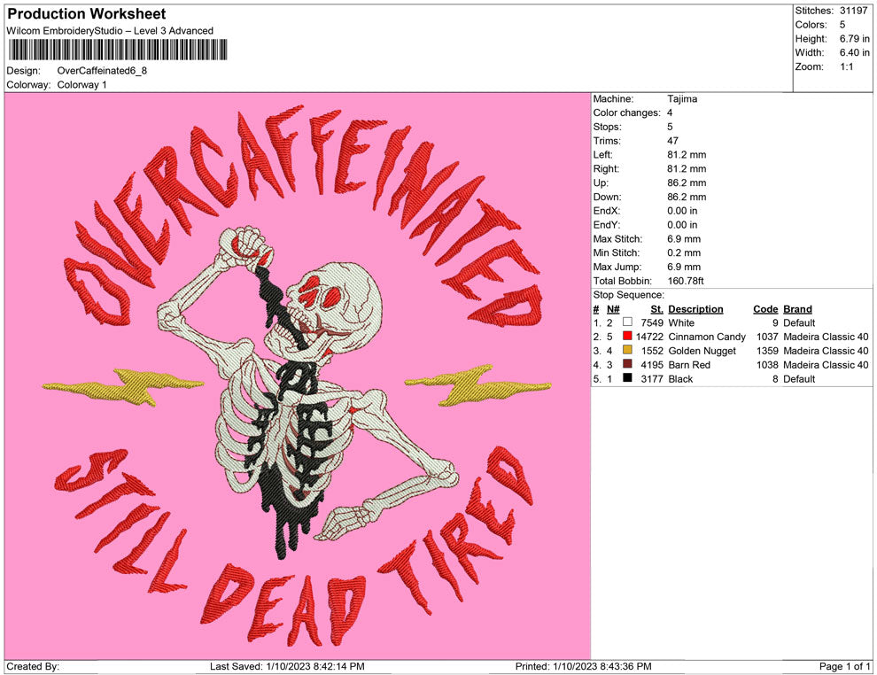 Over Caffeinated embroidery design
