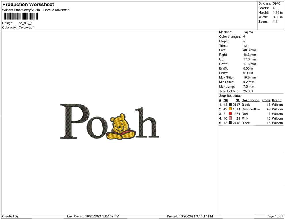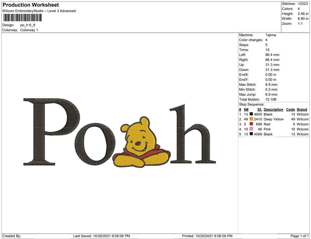 Pooh and letter embroidery design