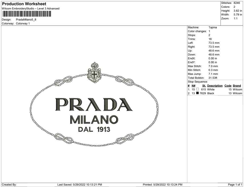 Prada Milano Vintage embroidery design