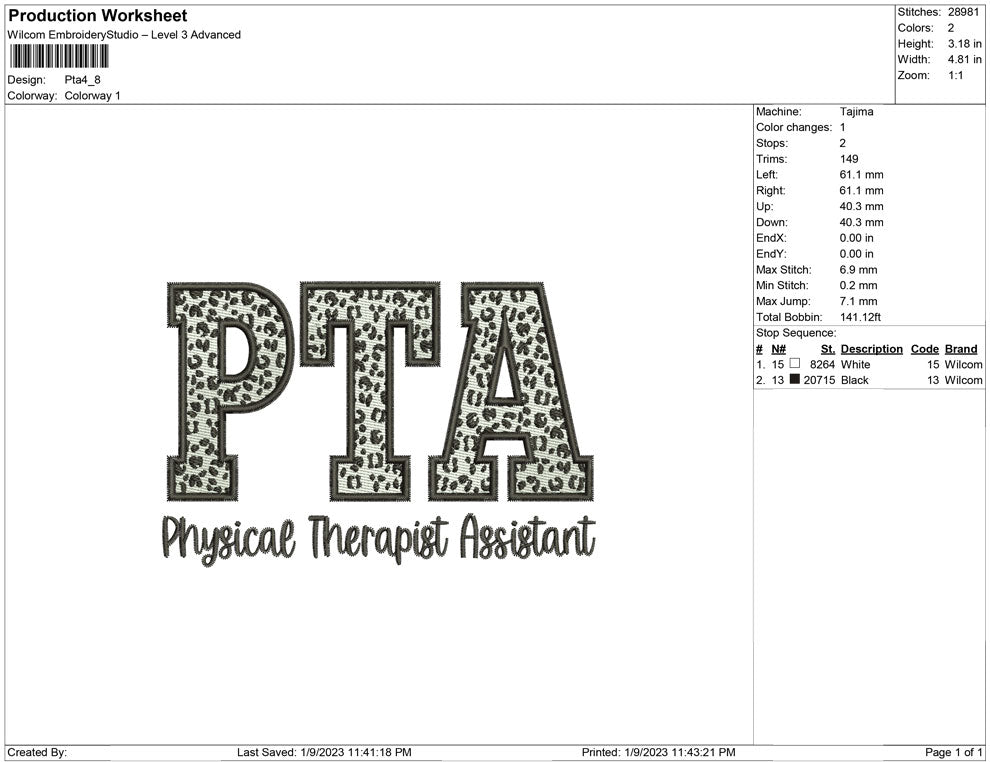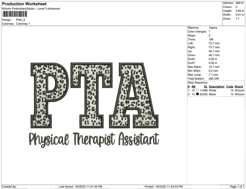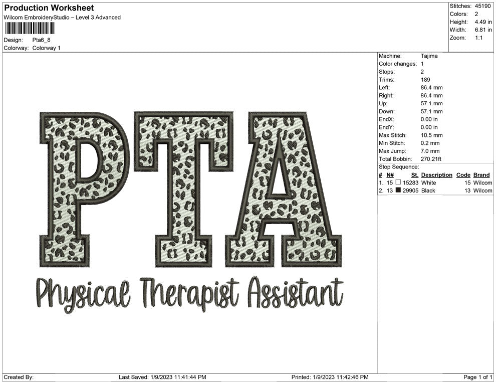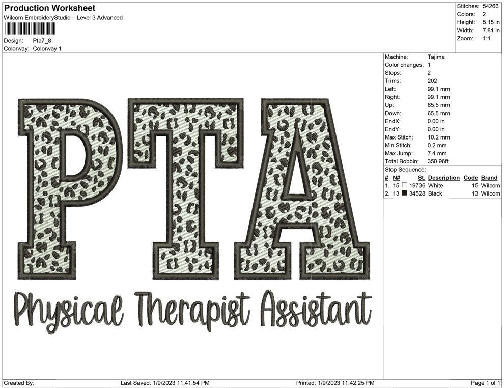 PTA embroidery design