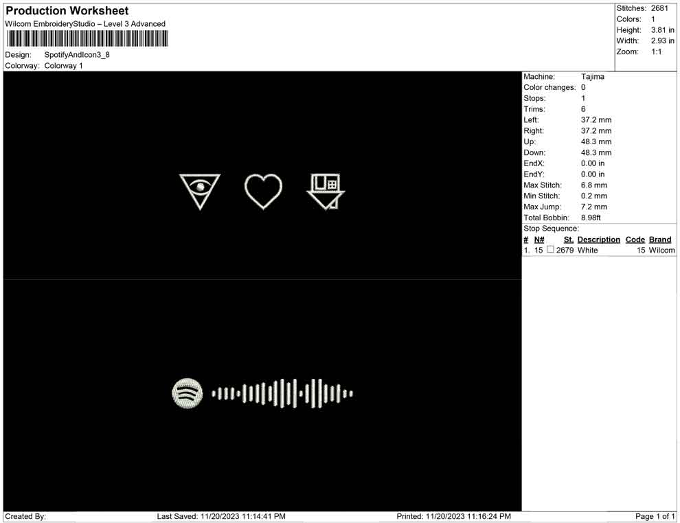 Spoitify and icon Embroidery design