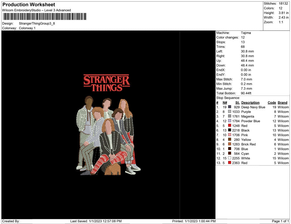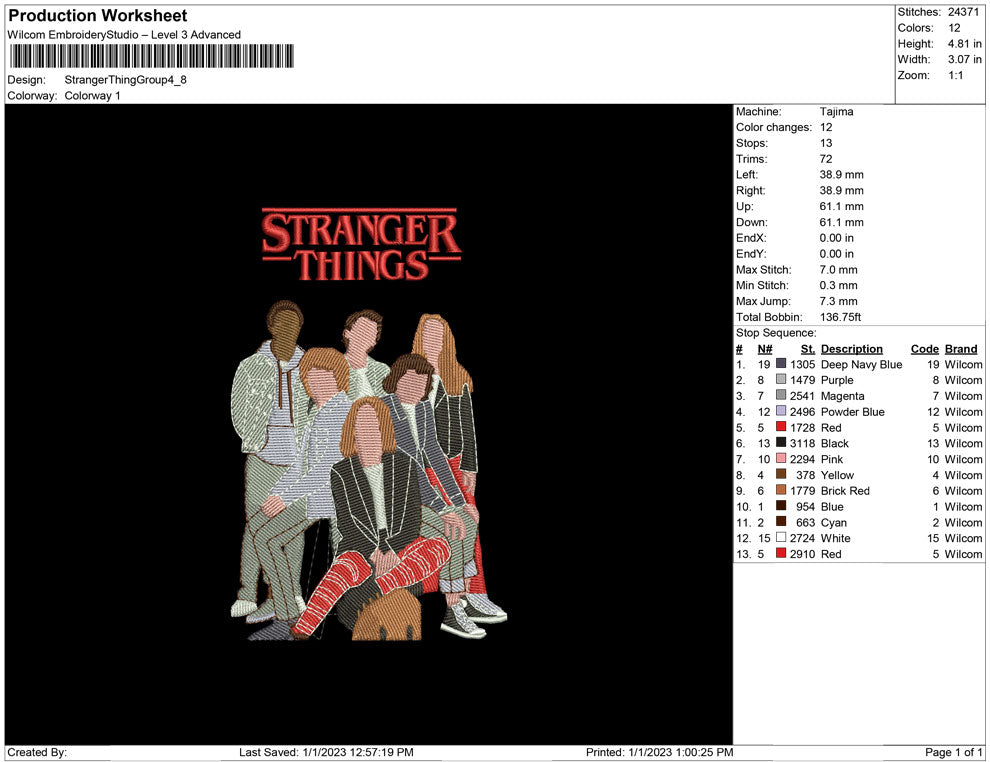 Stranger things Group embroidery design