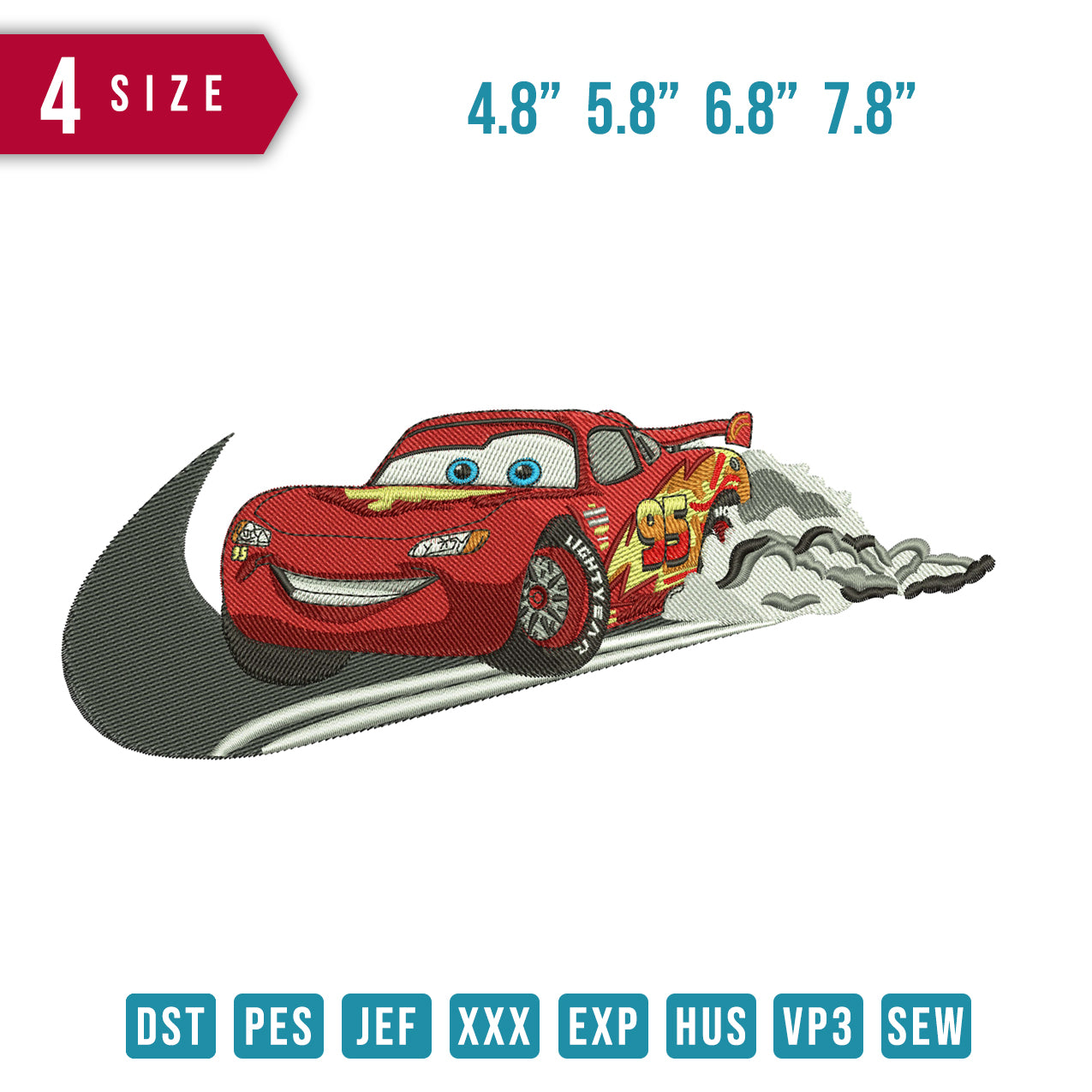Swoosh Mcqueen Smoke embroidery design